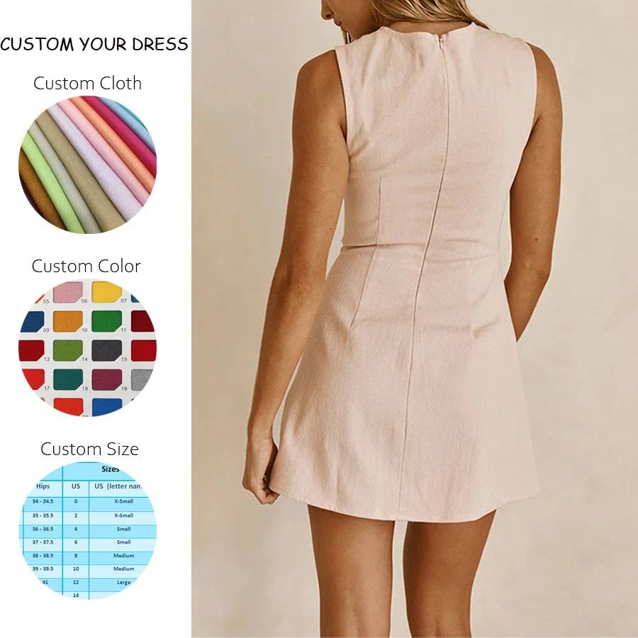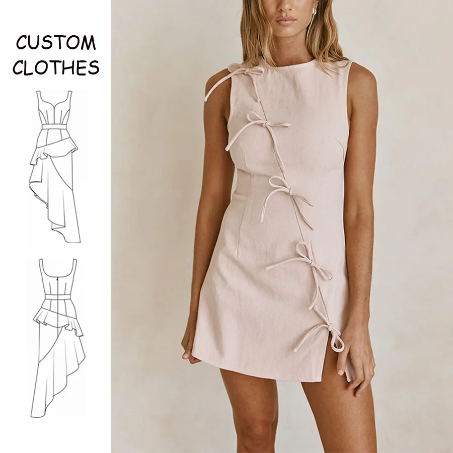 OEM Spring New Women's Temperament Custom Fashion Casual Bowknot Round Neck Sleeveless Mini Dress