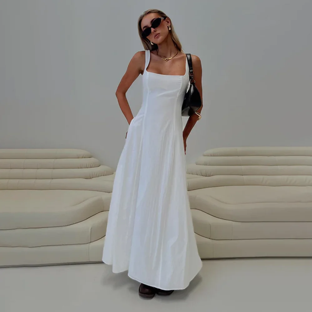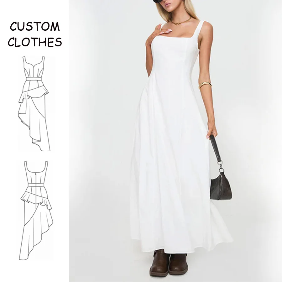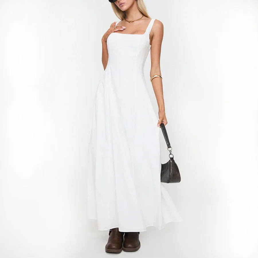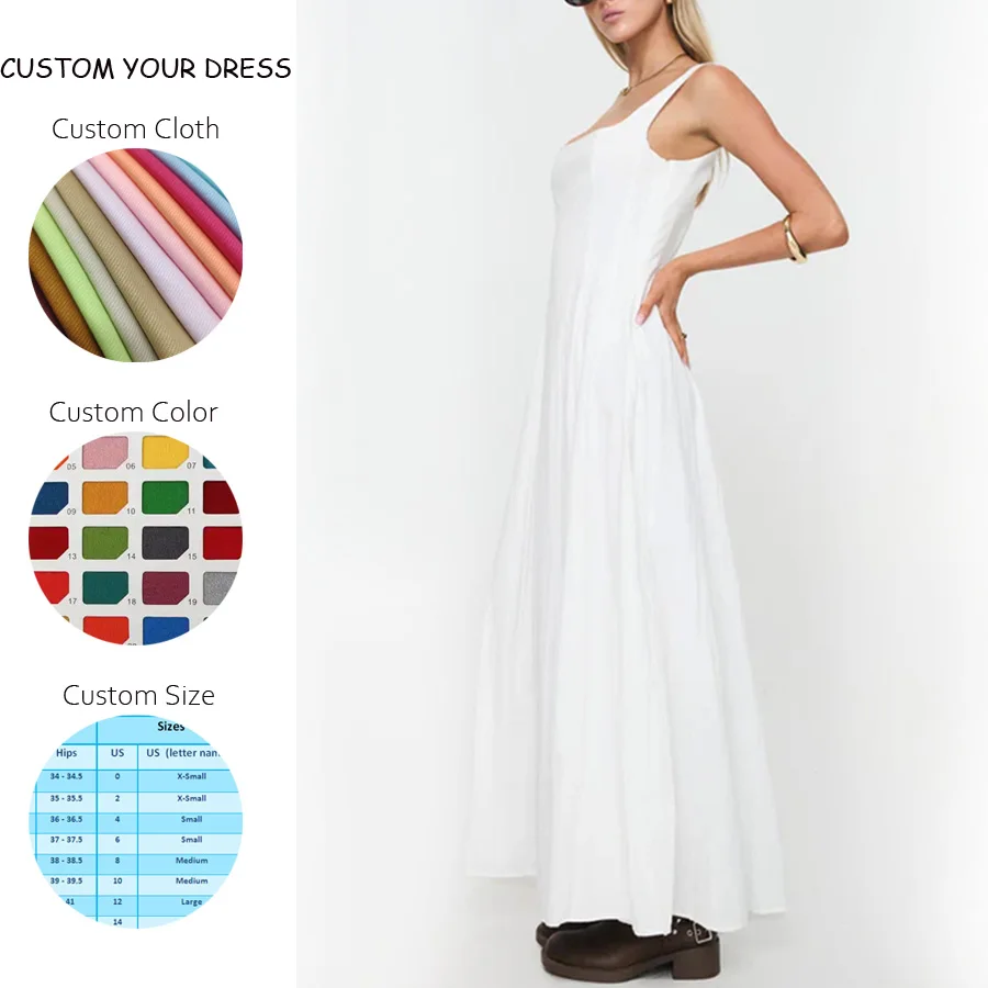 OEM Wholesale Sleeveless Custom Women's Elegant Casual Dresses Solid Color Maxi Length tank Dress Summer Clothes