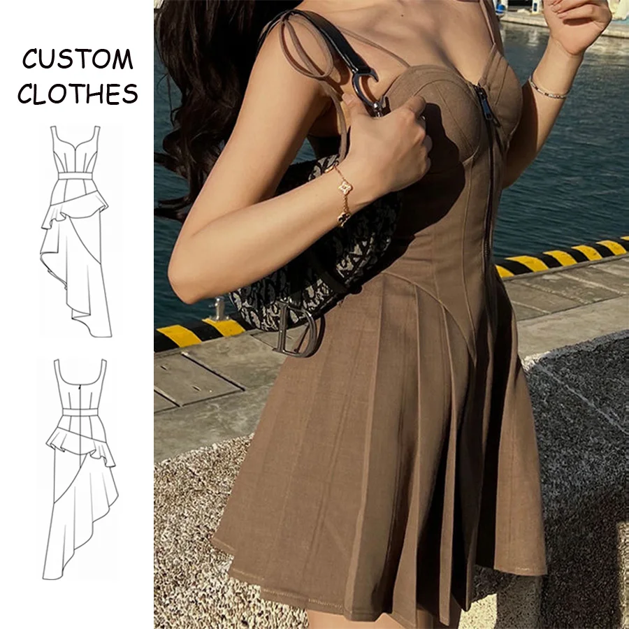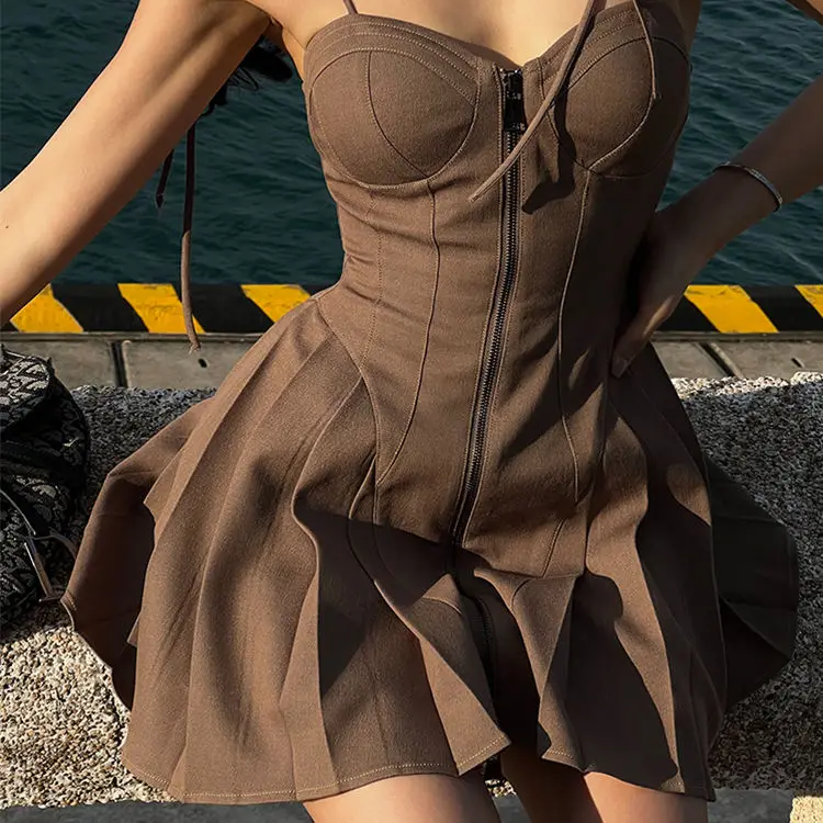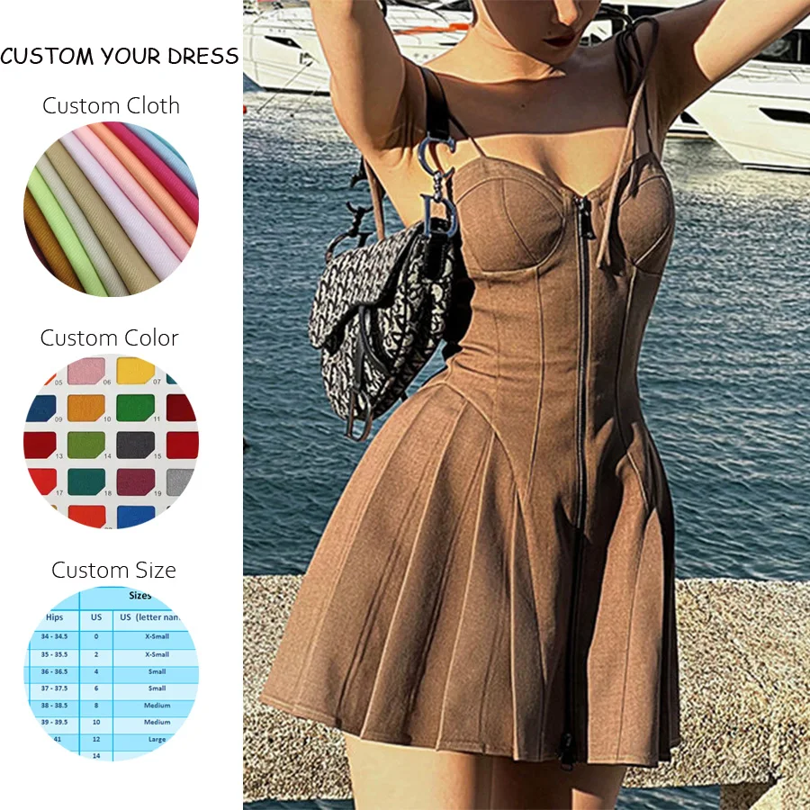 Oem Clothing Fashion Wholesale Ladies Casual Sweet Pure a Line Short Dress for Women Customized logo Tight Waist Pleated Women