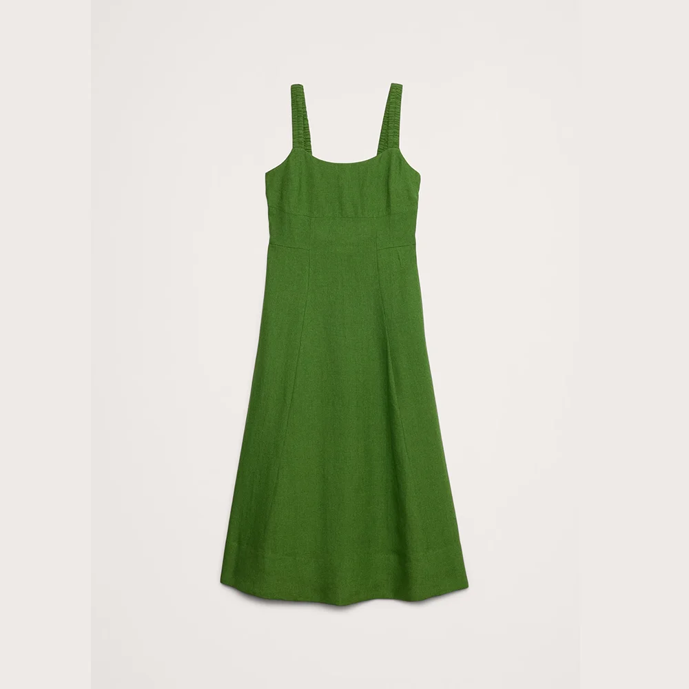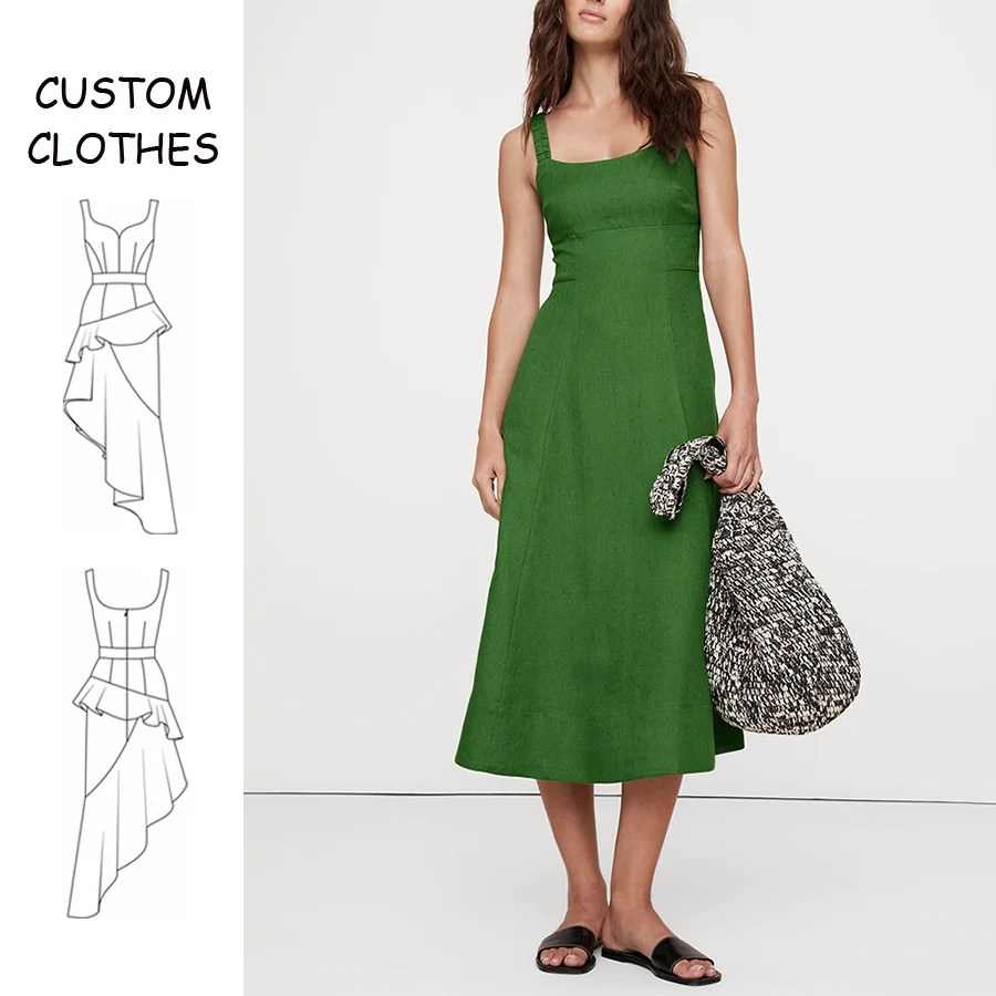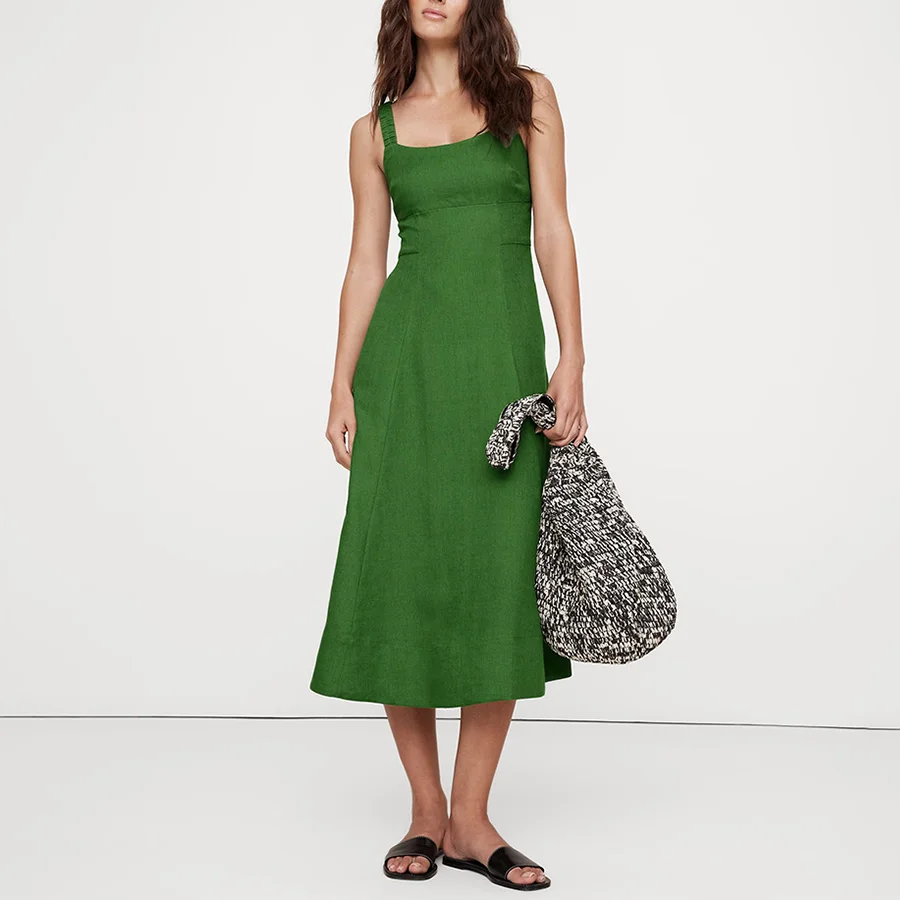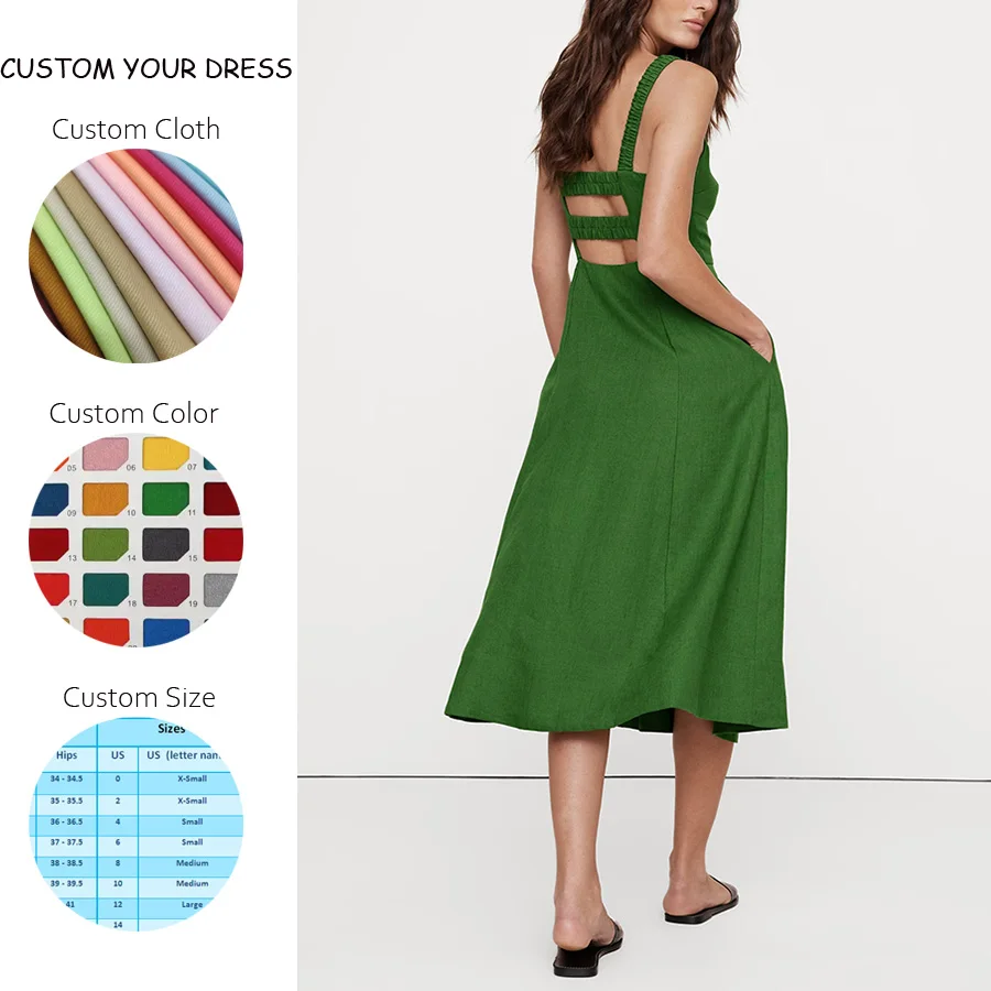 OEM Women Front Slit Strappy Fitted Midi Dress Custom Vintage Open Back Straight Neck Thin Straps Female Dresses Vestidos Mujer