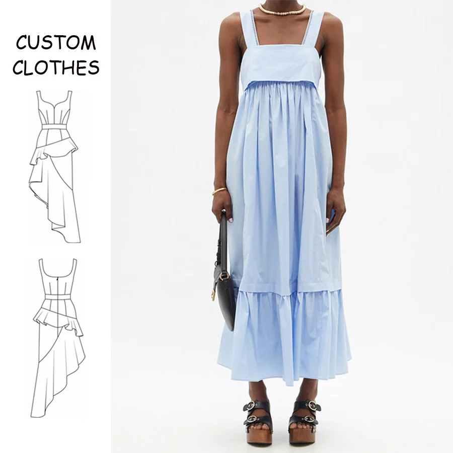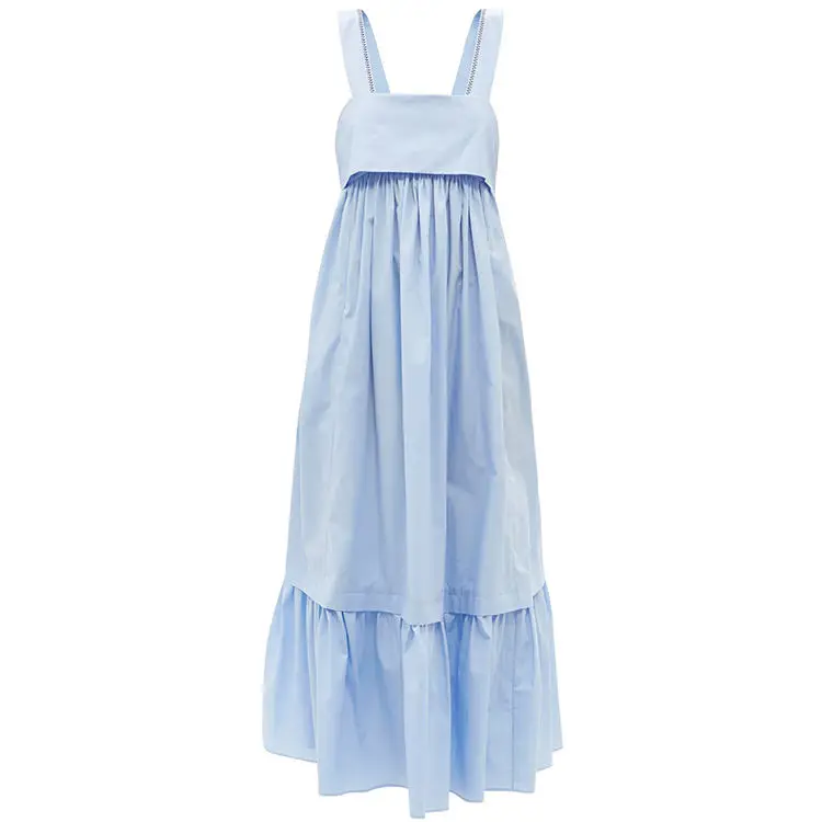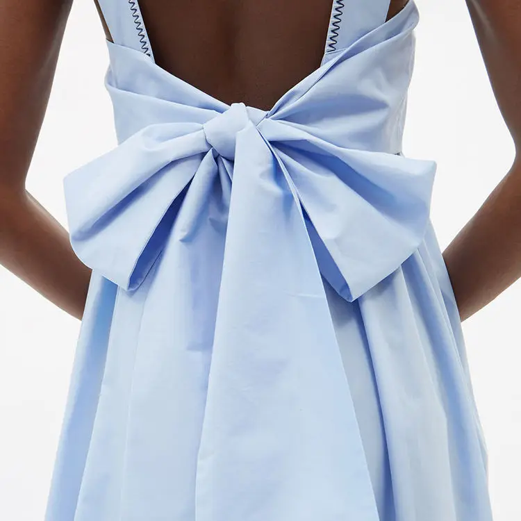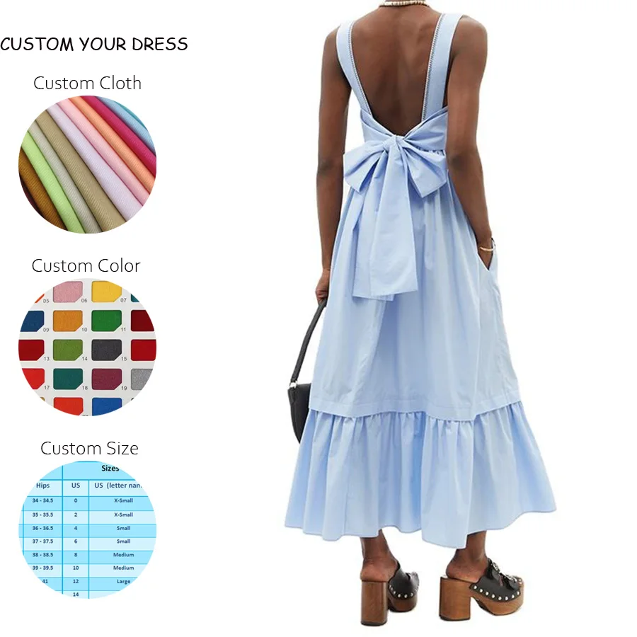 Dress Fashion Wholesale Ladies Girls Dress Elegant Customized Solid Cotton Summer Tie-back Sashes Poplin Maxi Women Casual