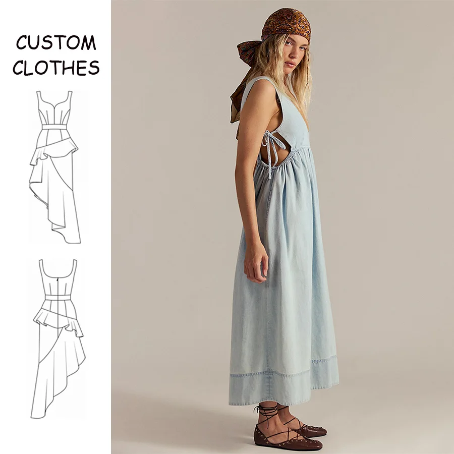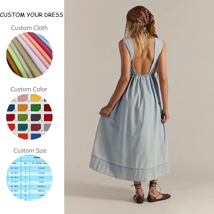 Custom Boheme Resort Vacation Solid Maxi Summer Cotton V-neck Sleeveless Linen Texture Casual Slip Dress for Women