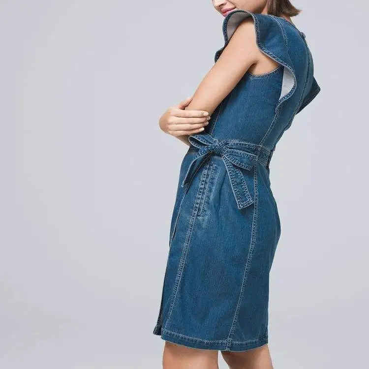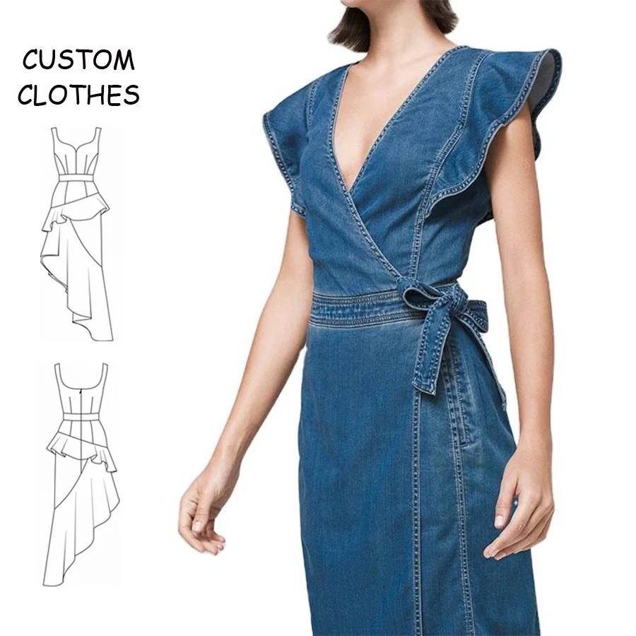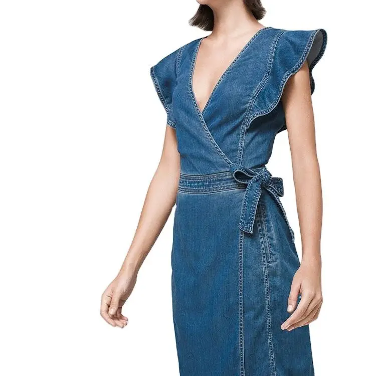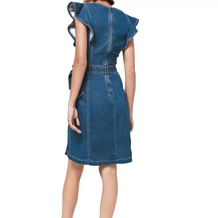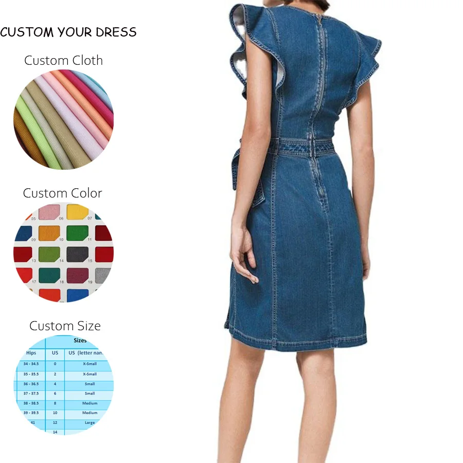 Design Wholesale Ladies Casual Dress Customized Short Flounce-sleeve Denim Women Dresses Summer 2025 New Black or Customized
