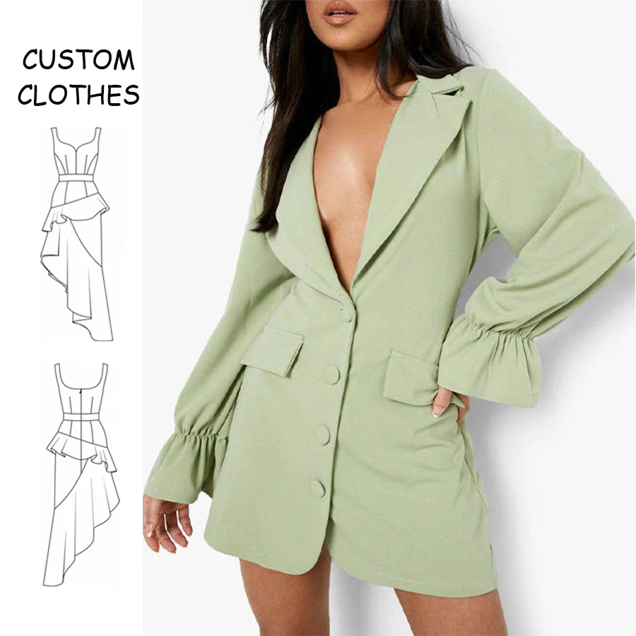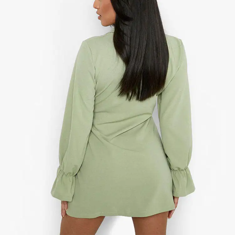 Summer Solid Natural Fashion Wholesale Elegant Casual Long Sleeve Mini Dress Custom Flare Sleeve Pocket Detail A-Line Silhouette