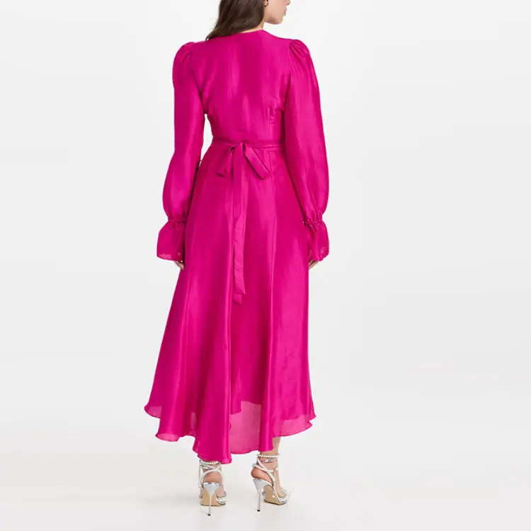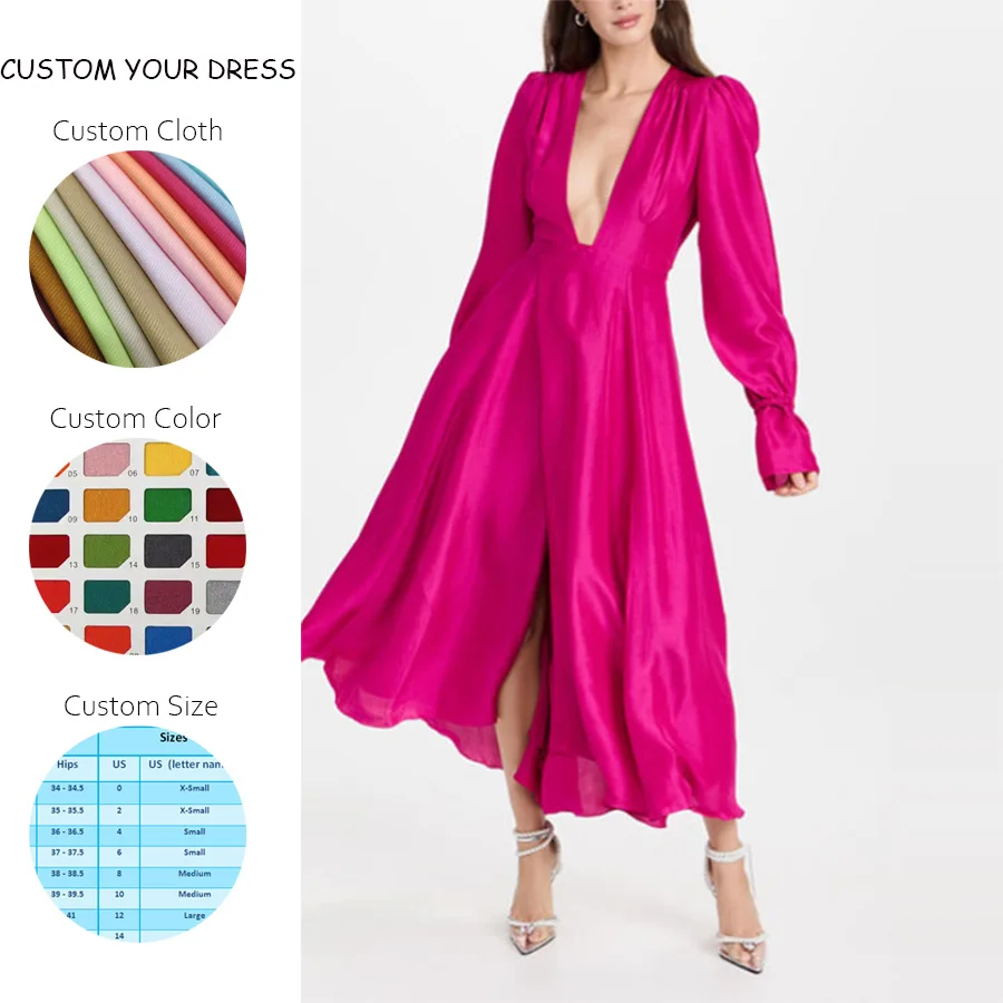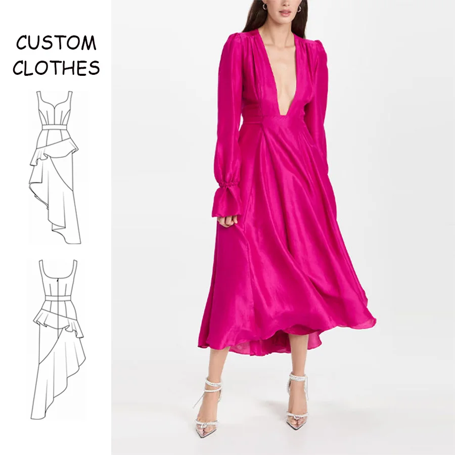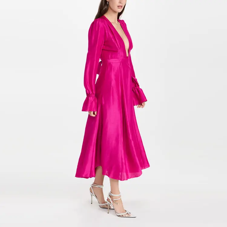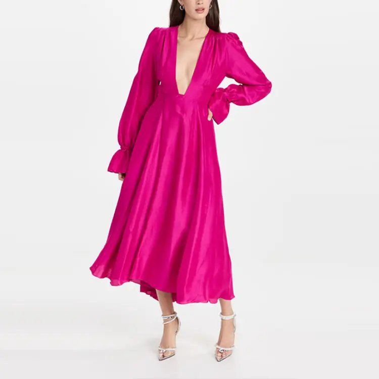 Fashion Wholesale Girls Long Sleeve Dress Elegant Customized Ladies Clothes Casual Deep v Neck Dresses for Women