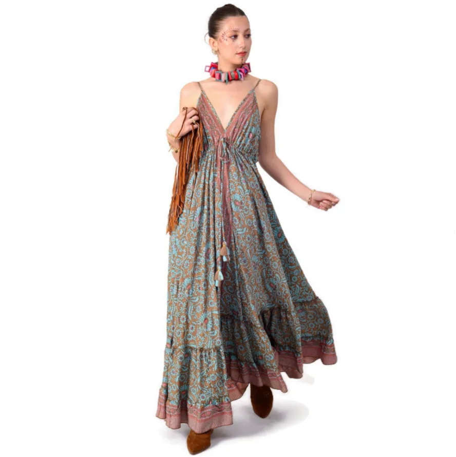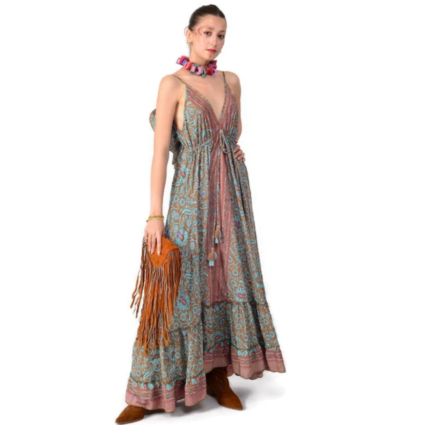 2025 New Sweet Wool Women's Floor-Length V-neck Sleeveless Pleated Dress Elegant Solid Color Summer Natural Breathable Front