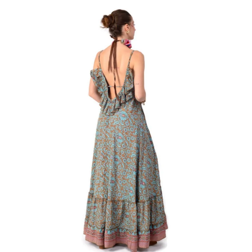 ZYHT 73957 Hot Selling Women Lady Printed Satin Beige Mermaid Fish Tail Floor Length Party Cocktail Evening Dress Gown