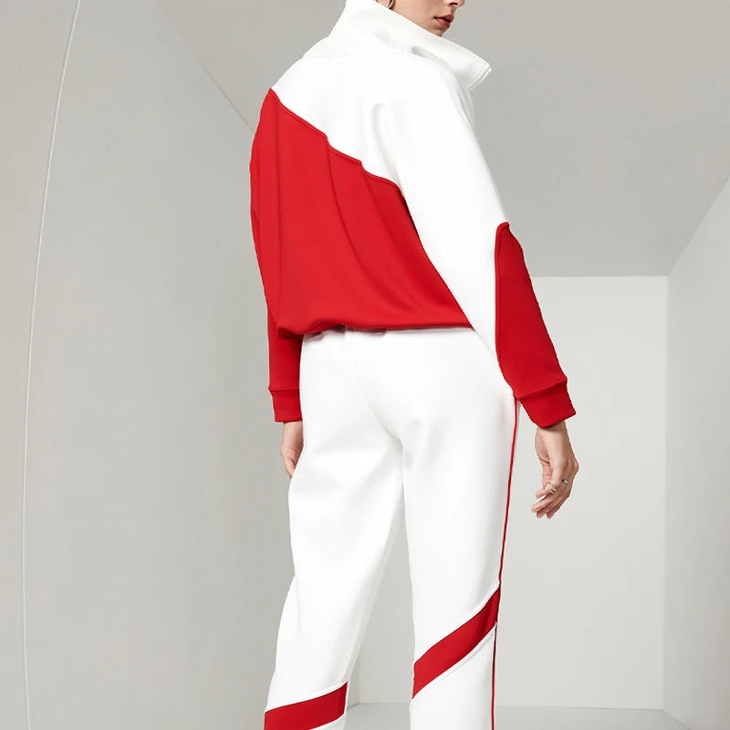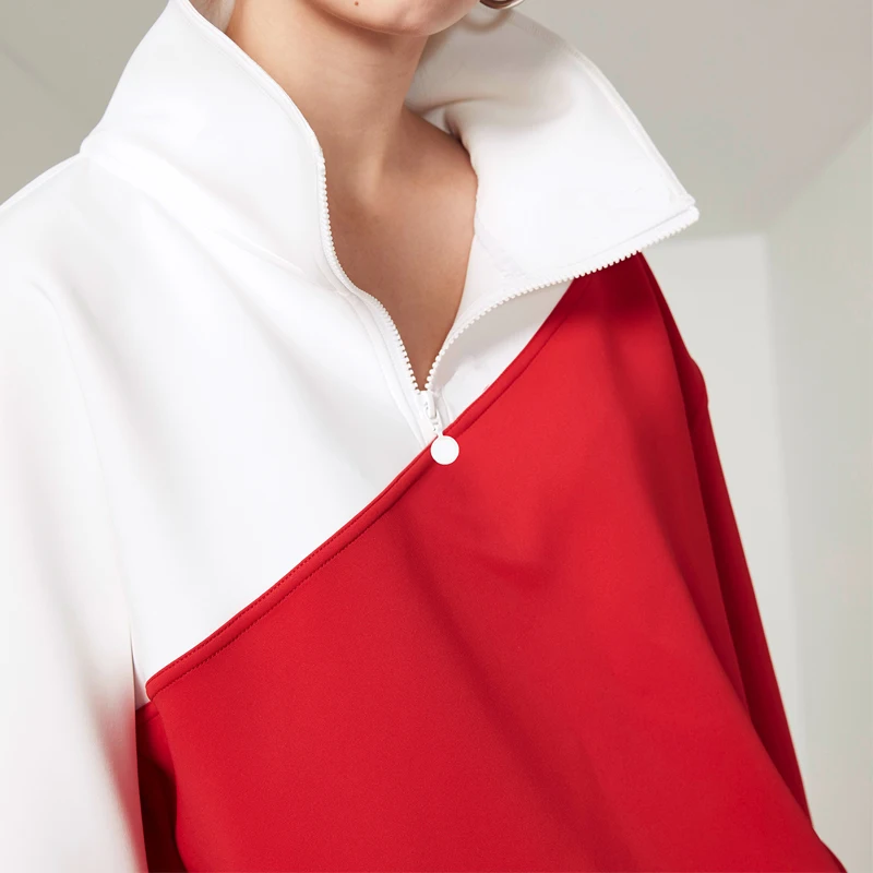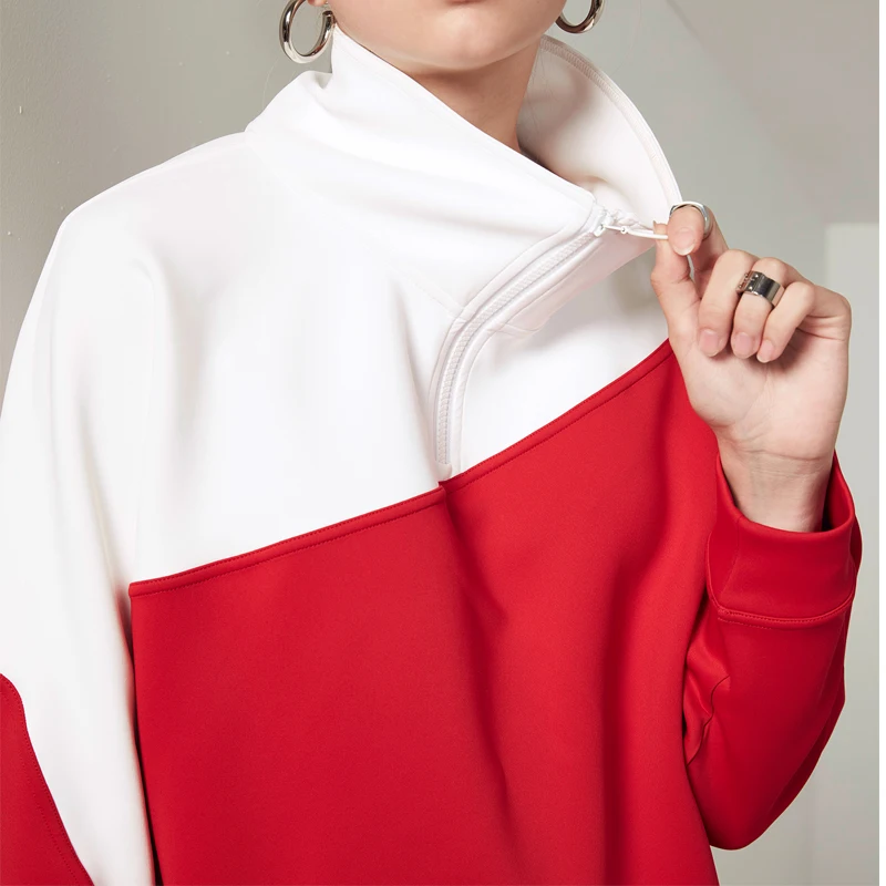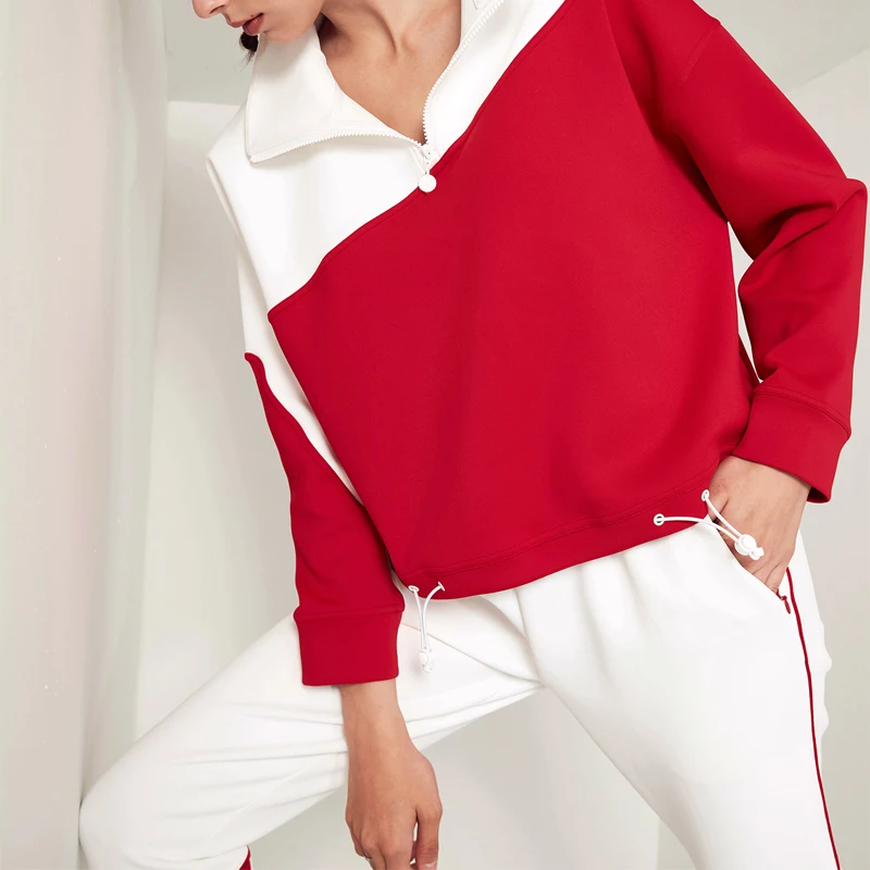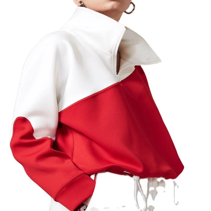 OEM ODM Long Casual Knitted Spring and Autumn Contrast Color Zippered Pullover Sweatshirt for Women Crew Neck Oversize