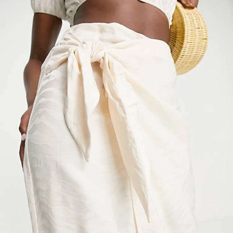 Sweaty Women's Plus Size Casual Elegant Natural Waist Knot Side Wrap Pencil Midi Skirt with Slit Drawstring Thigh Full Length