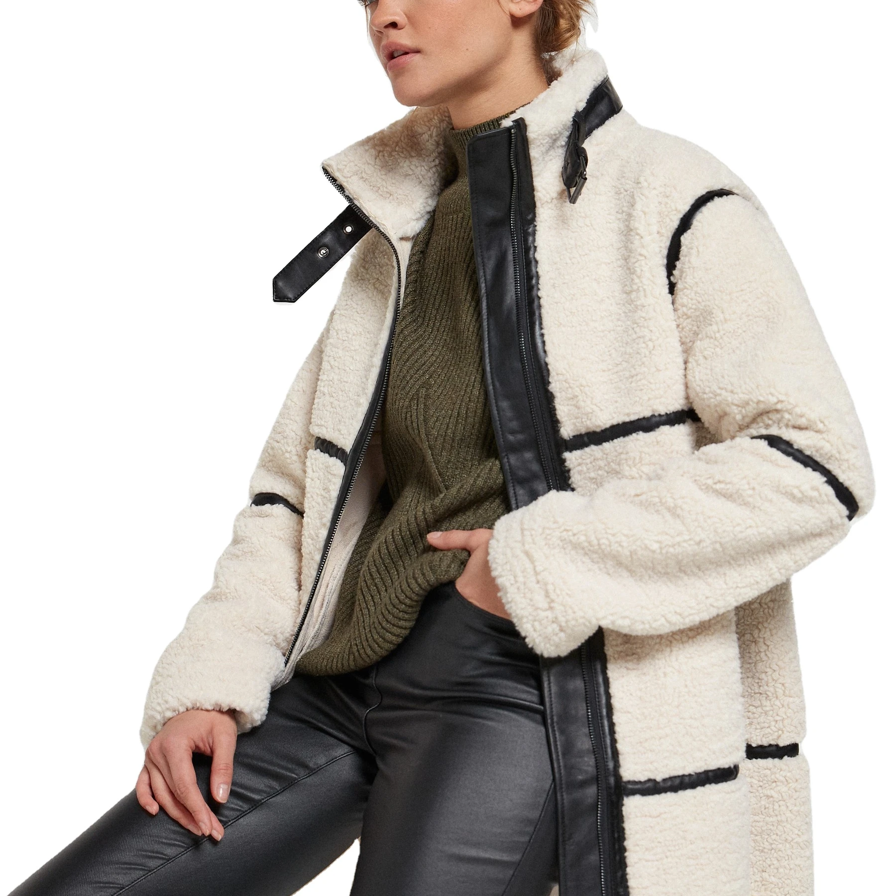 Gray Fleece Waterproof Winter Women's Jackets & Coats with Pockets Vintage Loose Wool Long Sleeve Button Down Print