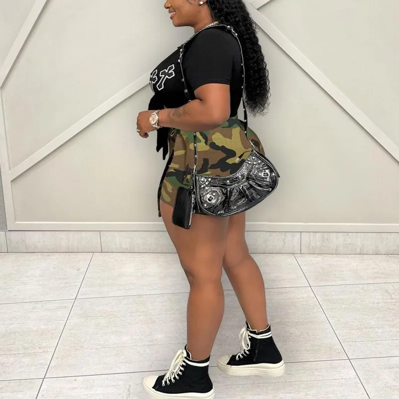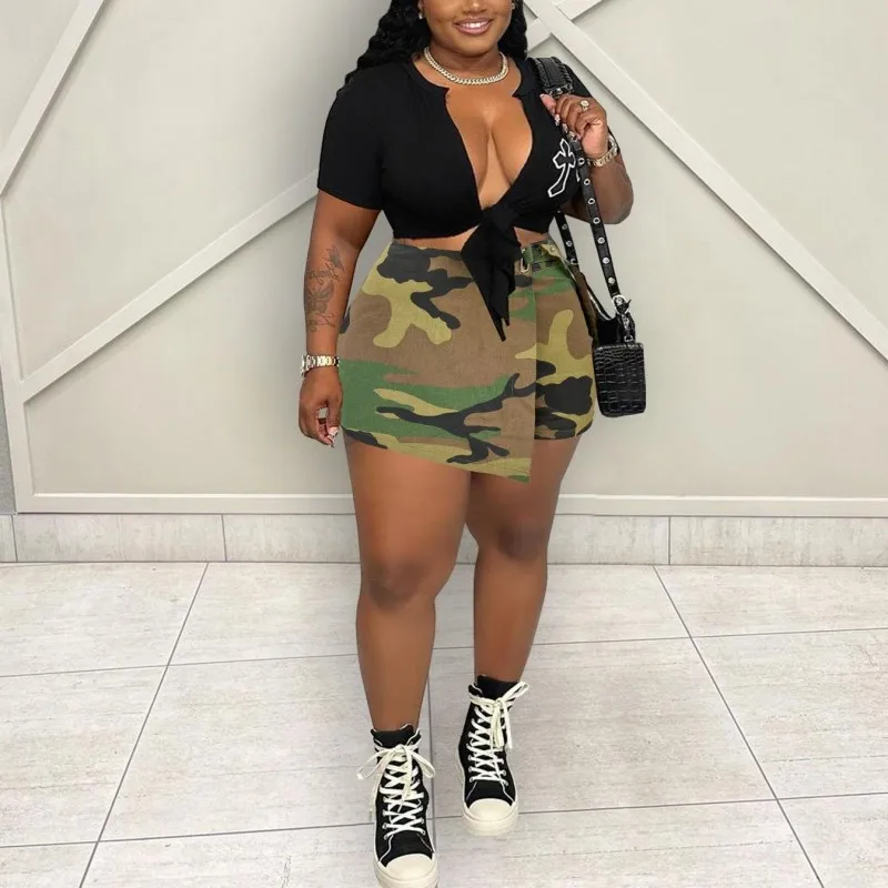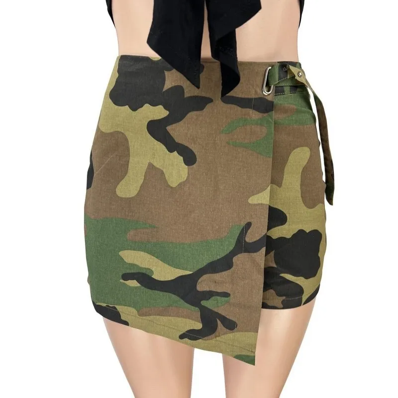 2025 Trendy Summer Women's High Breathable Irregular Camouflage Print Denim Skort-Casual Short Skirt Pants for Beach Streetwear