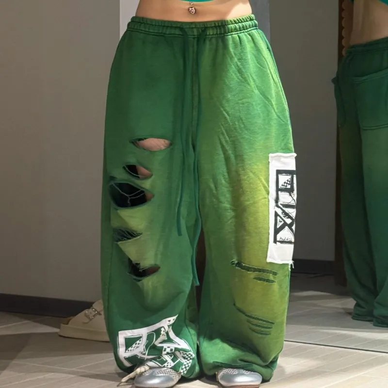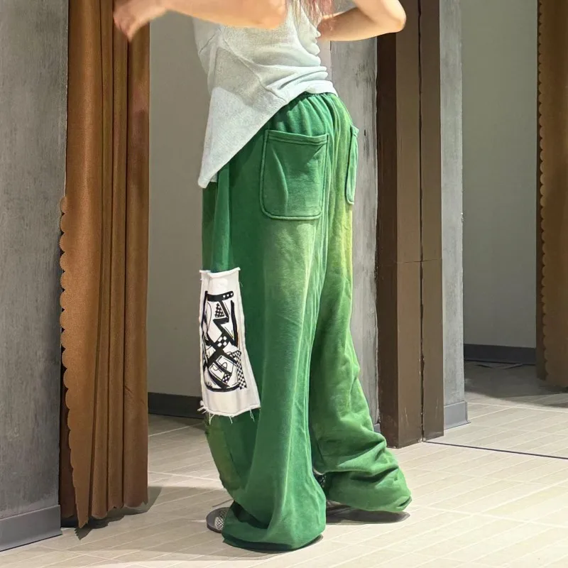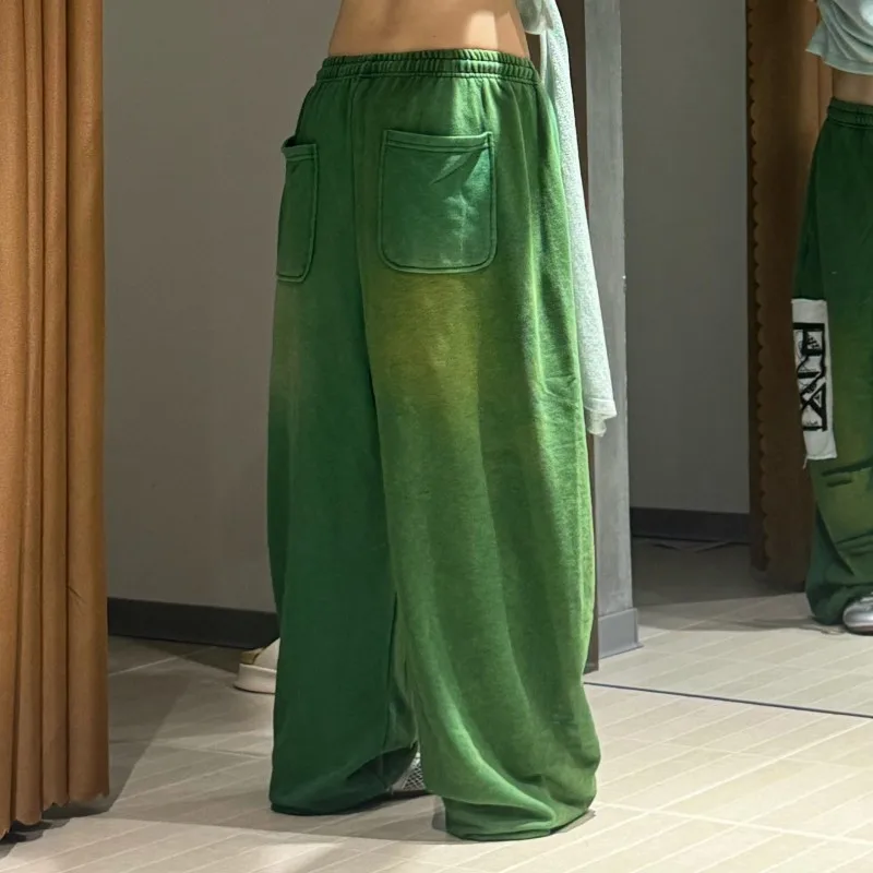 Women's Custom Cotton Pants-Wide Straight Leg Vintage Loose Fit Elastic Waistband Side Pockets Washed Flat Quick Dry