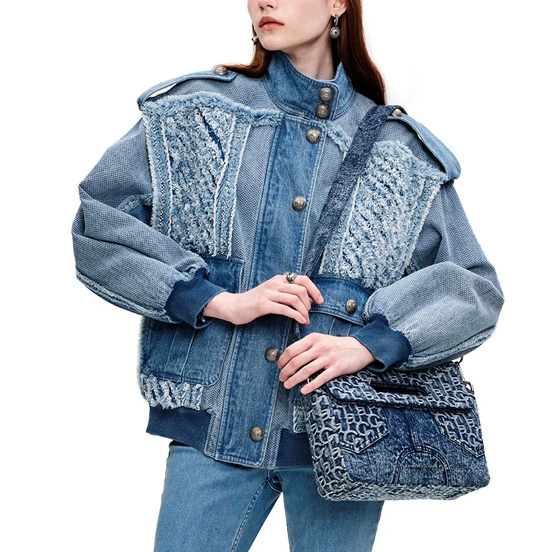 Custom Autumn/winter Casual Denim Women's Short Jacket Nailed Beaded Denim Jacket Women's Clothing