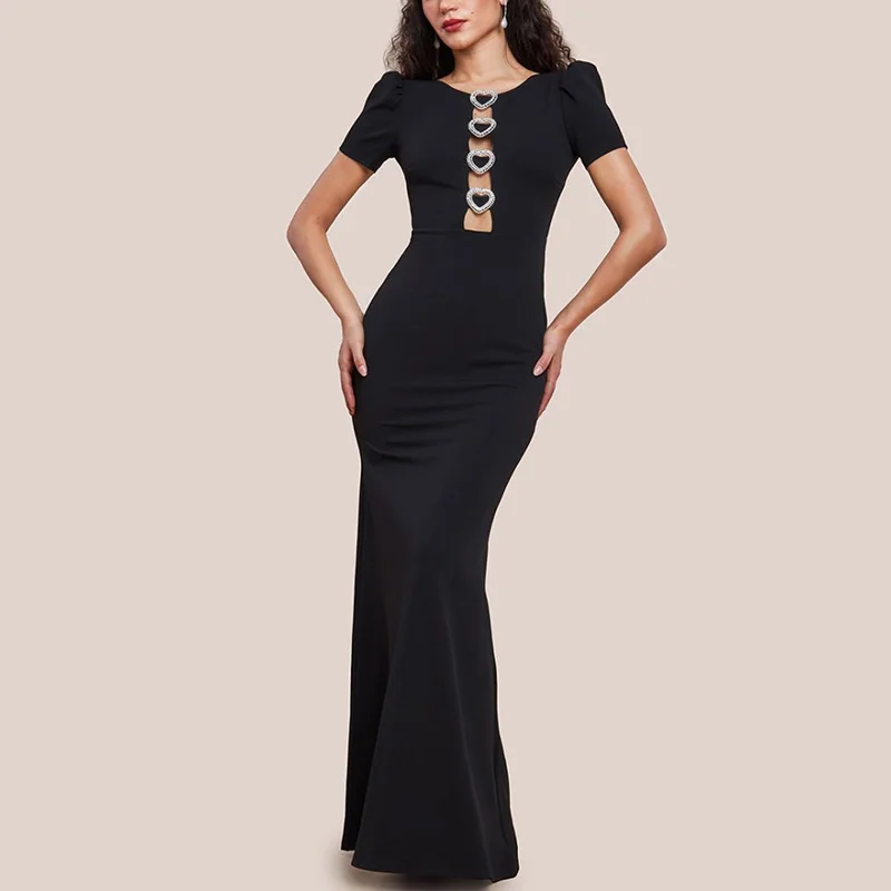 Chic Maxi Evening Dress Woman Love Button Fishtail Dresses 2025 High-End V-Neck Romantic Dinner Party Long Dress Lady