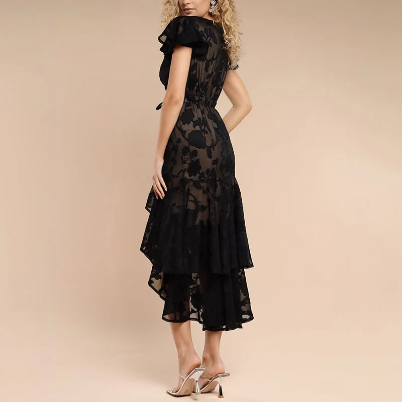 Halter Fashion Sexy Backless Women's Dresses Flocking Midi Length Elegant Pleated Dress 2025 Summer Clothes