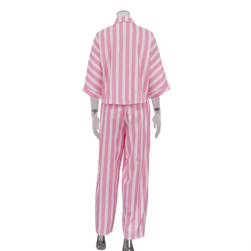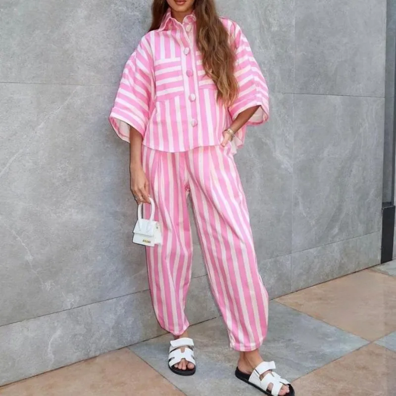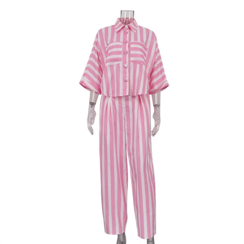 Wholesale 2025 Autumn Women's New Fashion Casual Set - Striped Loose Shirt & Wide - Leg Pants