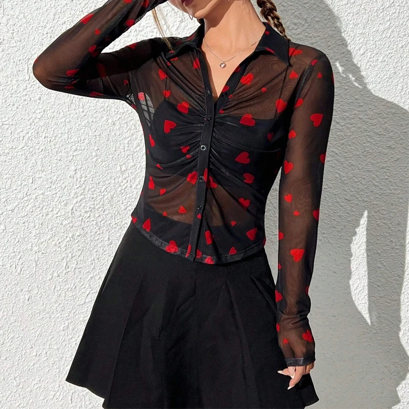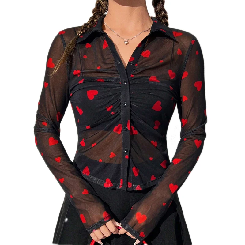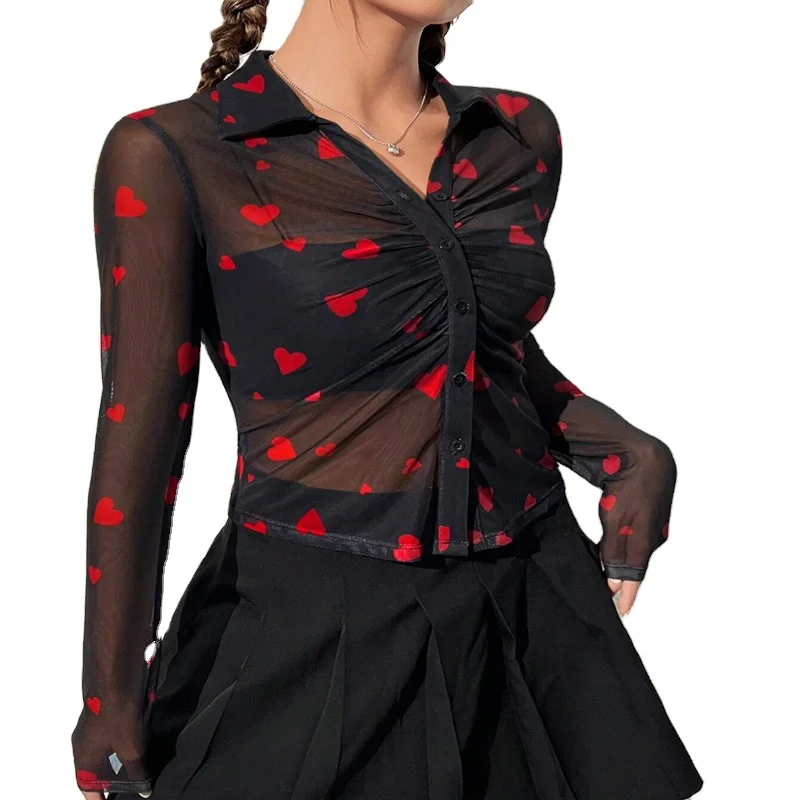 Spring Autumn Full Sleeve Casual Mesh Blouses Women Shirts Ladies Sexy Tops Clothes Women Wholesale