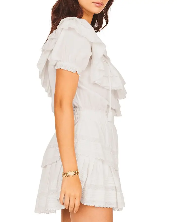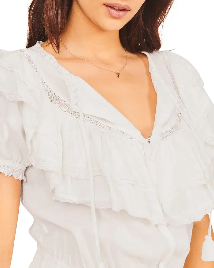 ZYHT 82024 White Blouse with Ruffled Cap Sleeves V-Neck Blouses Et Chemises Pour Femmes White Blouses for Women