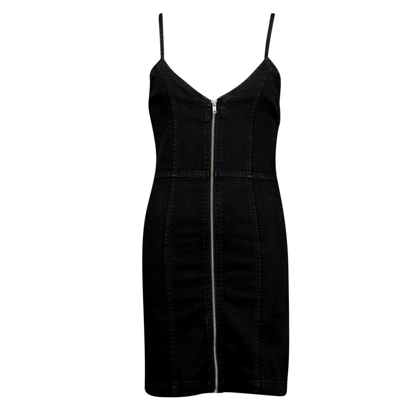 Zip Front Stretch Strappy Denim Dress Primavera Casual Vestidos Summer Mini Dress Black Women Dresses