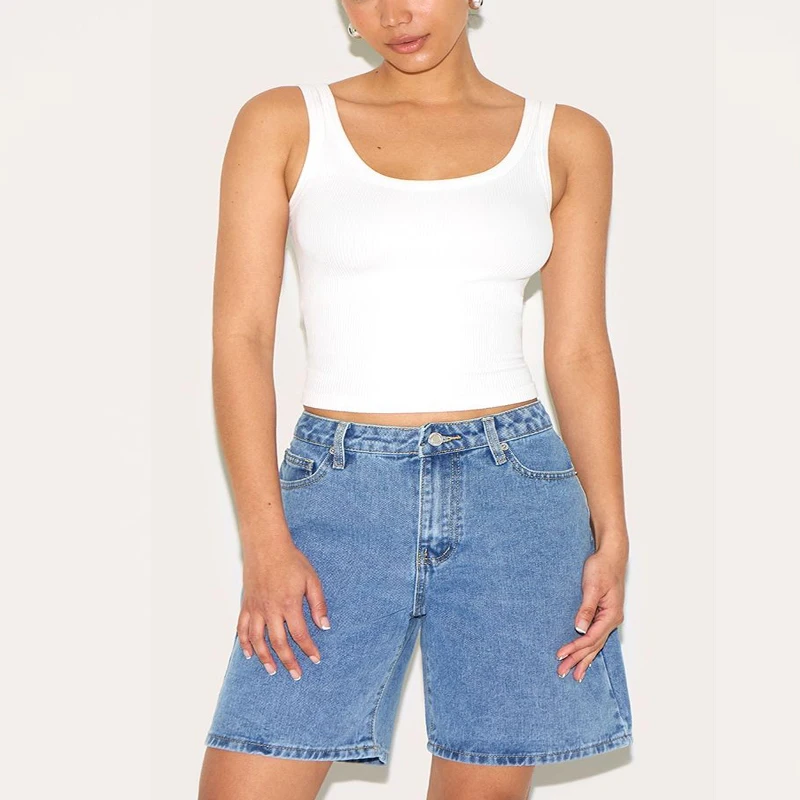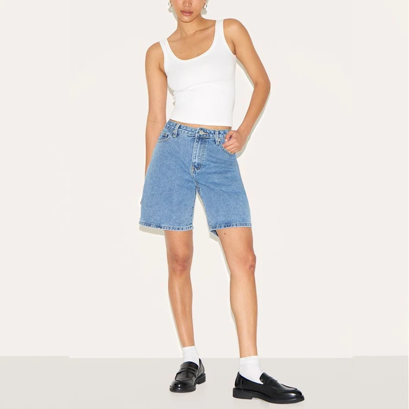 Factory Wholesale 2025 Custom Women's High Waist Wide Leg Pure Color Denim Shorts - Fashionable Design for Ladies