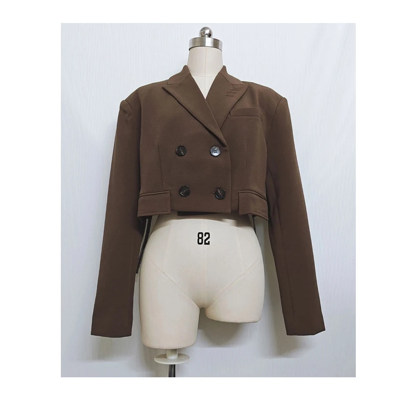 Brown Spring Autumn Preppy Style Double Breasted Coats Ladies Button Bomber Jackets for Women