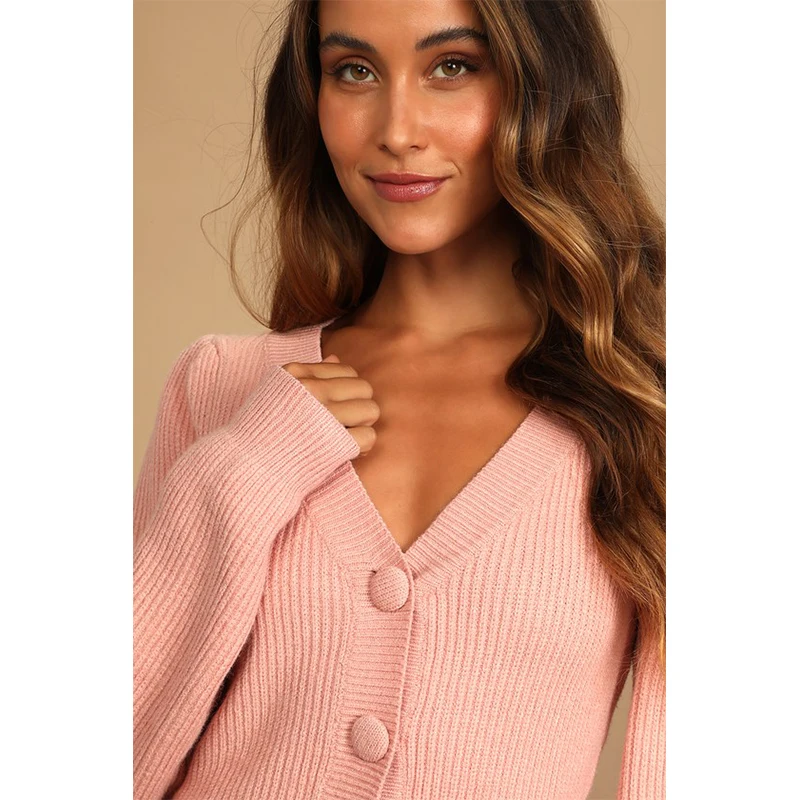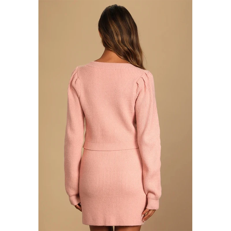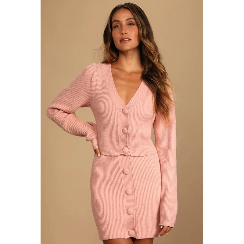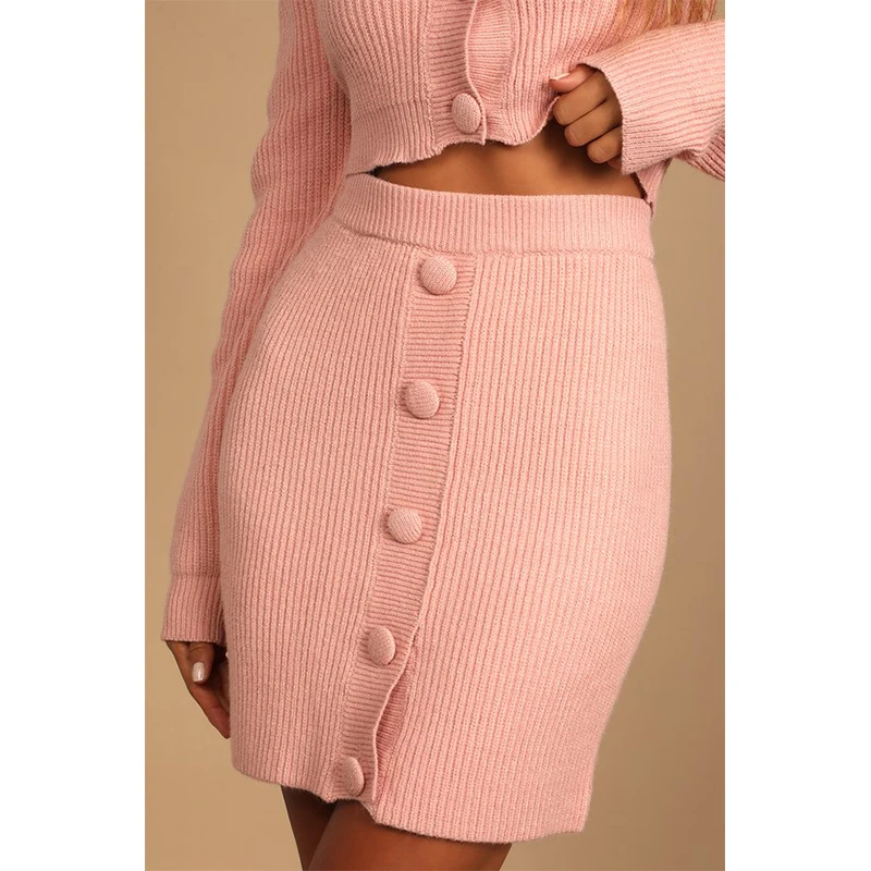 Custom Dusty Pink Knit Two-Piece Sweater Mini Dress Knitted Sweater and Mini Skirt Set