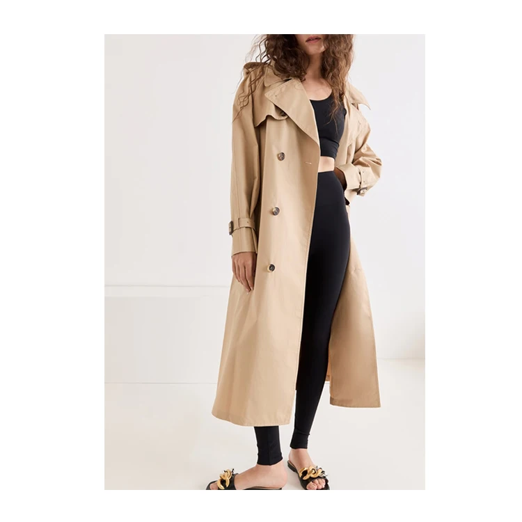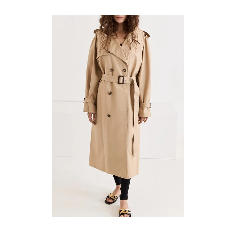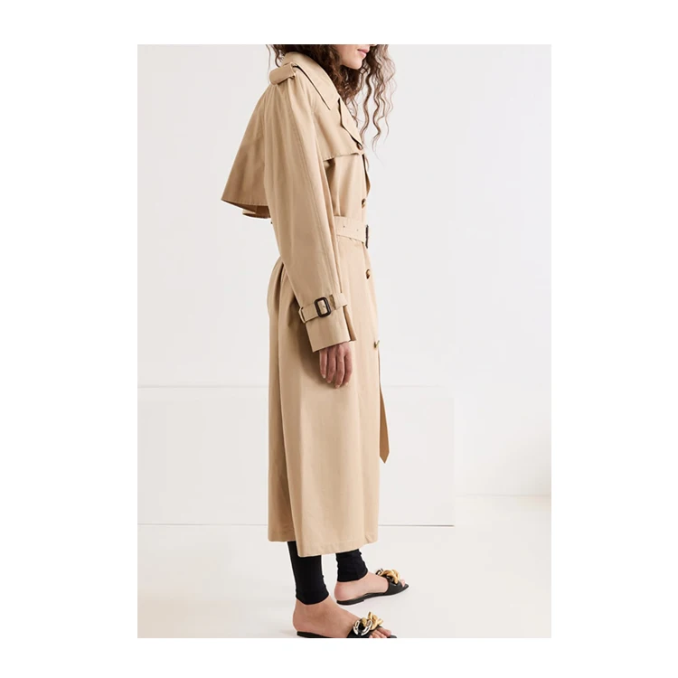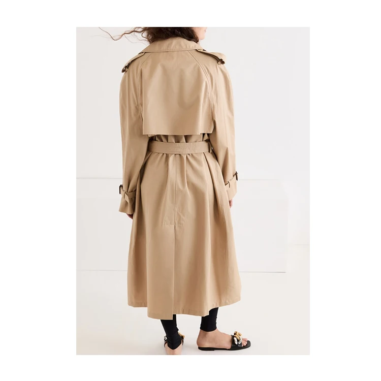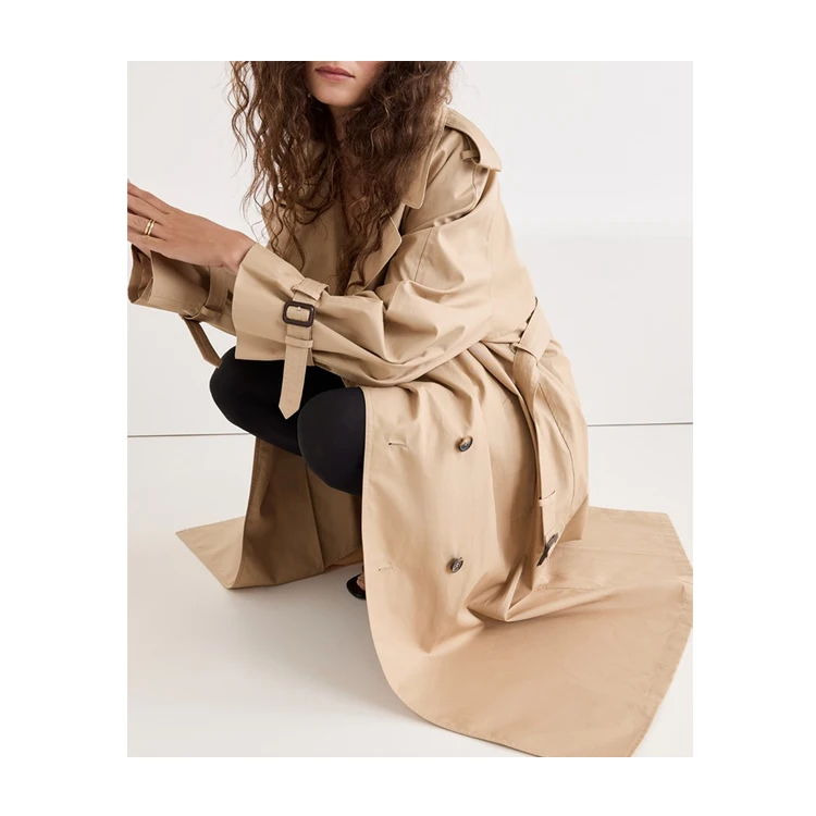 100% Cotton Twill Classic Windbreaker Jacket with Belt Long Trench Coat for Women