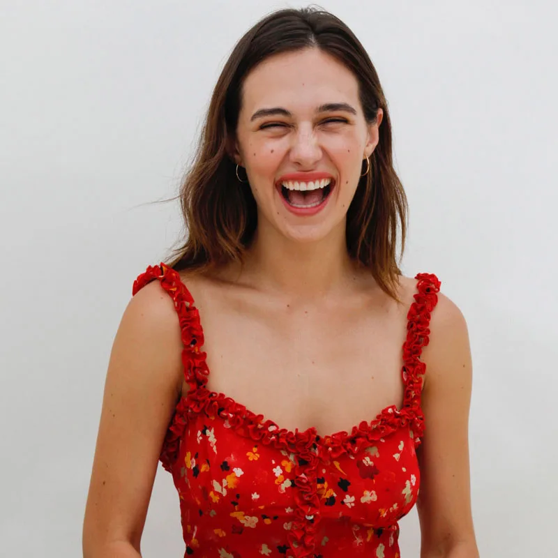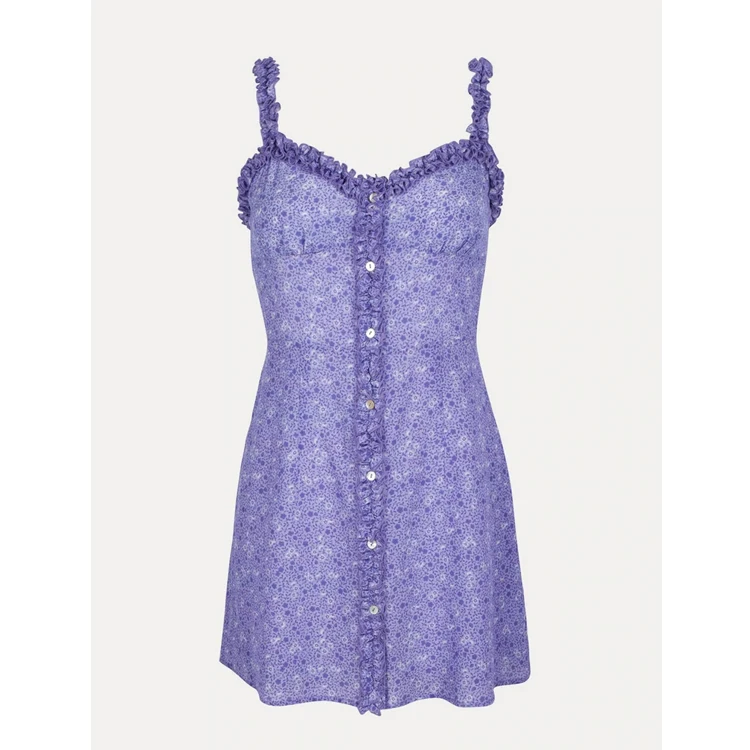 Lolita Button up Sexy Red Floral Print Ruffle Mini slip Dress