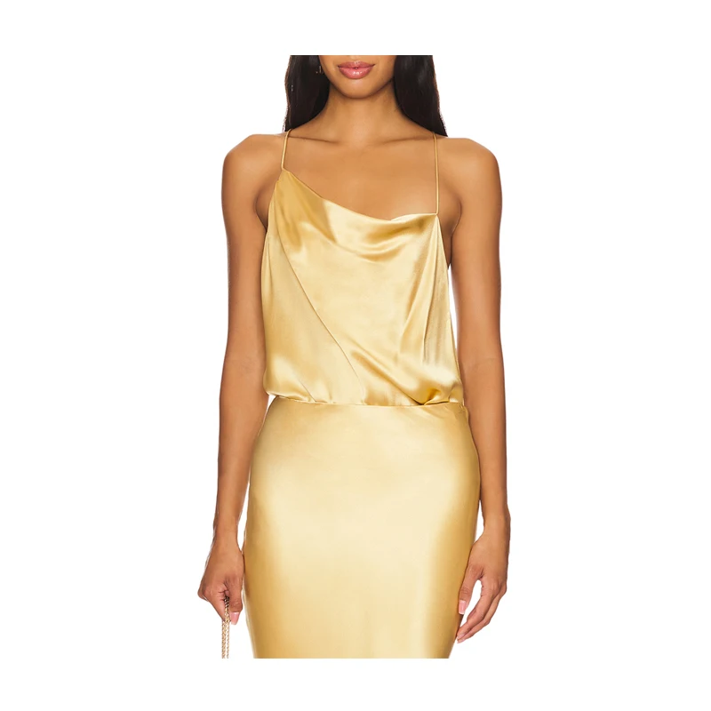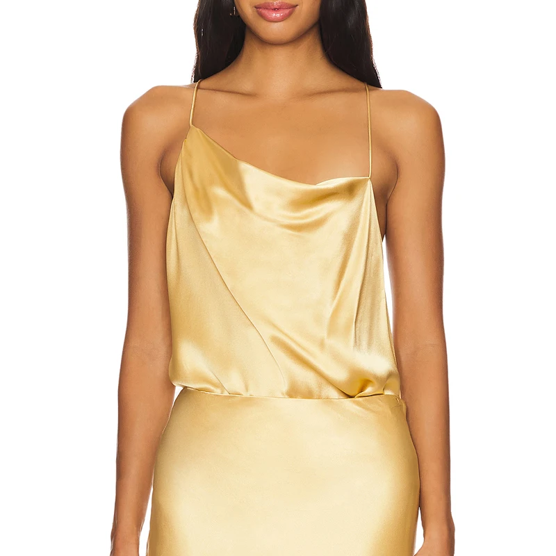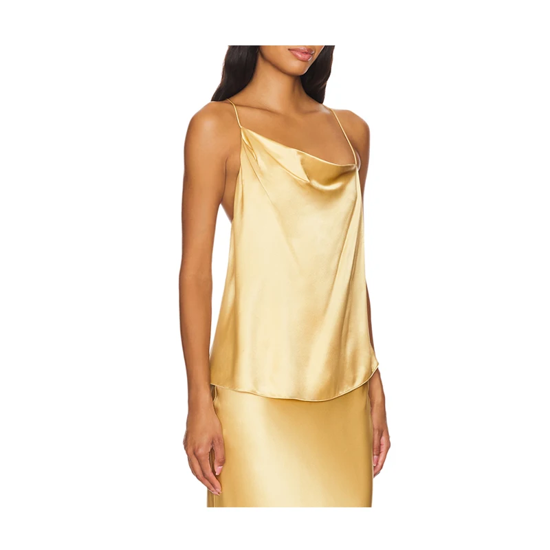 Custom Racer Back Asymmetrical Cowl Neck Silk Satin Cami tank Tops