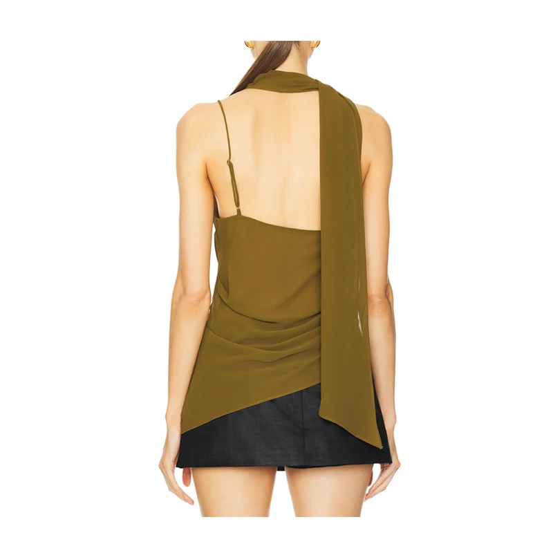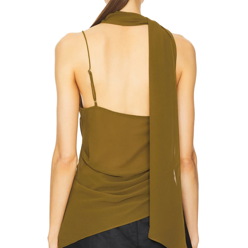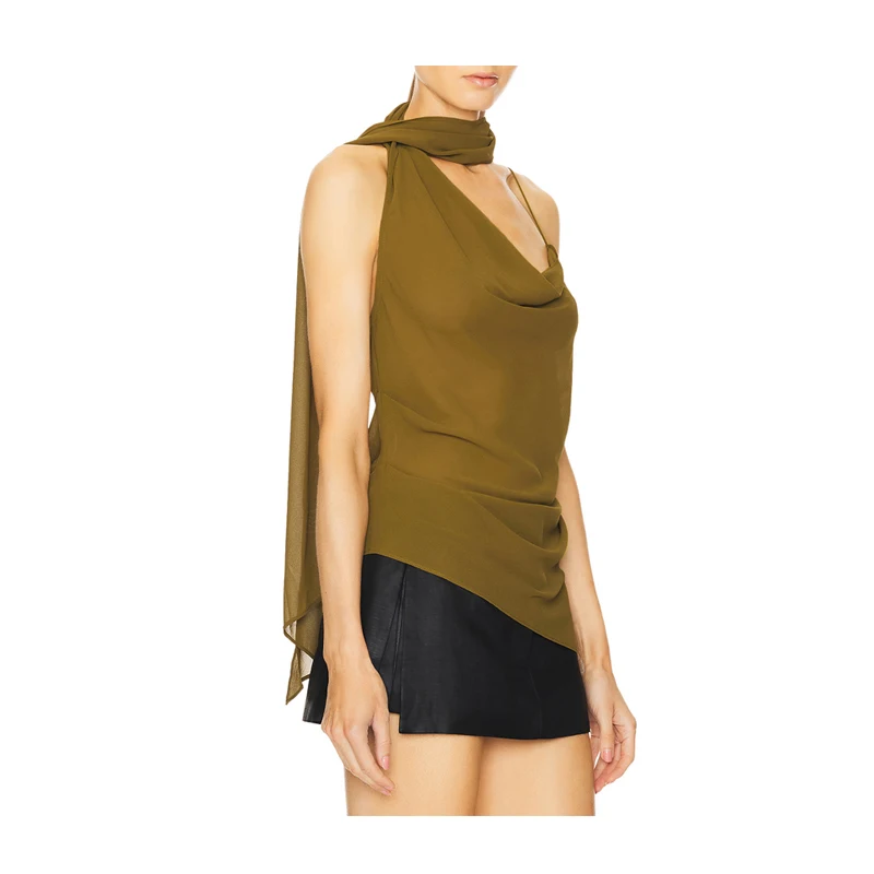Asymmetrical Simple Designer Cowl Neck Cami tank Tops With Scarf