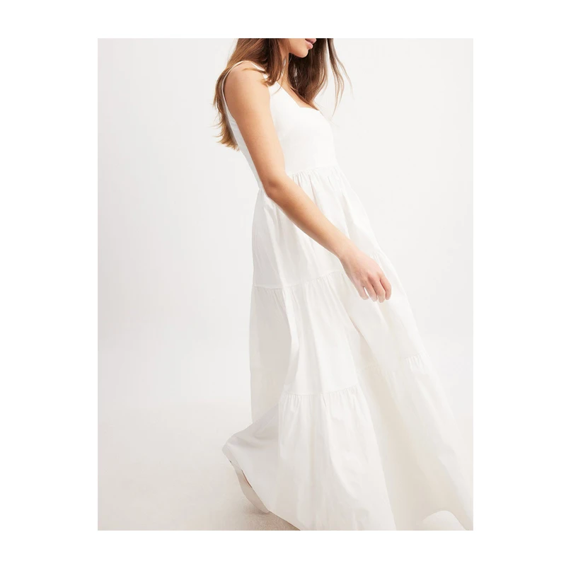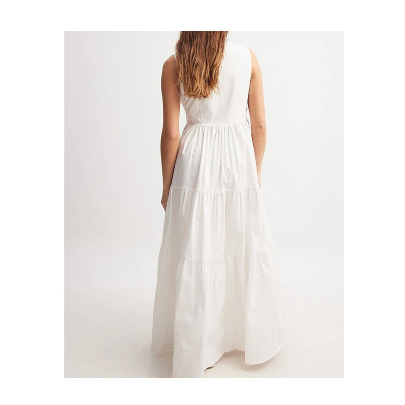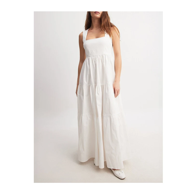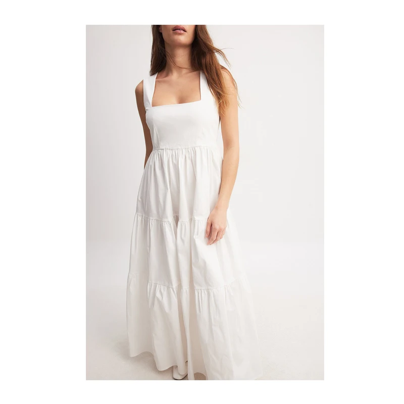 100% Cotton square Neckline Sleeveless Tiered White Maxi Summer Dress