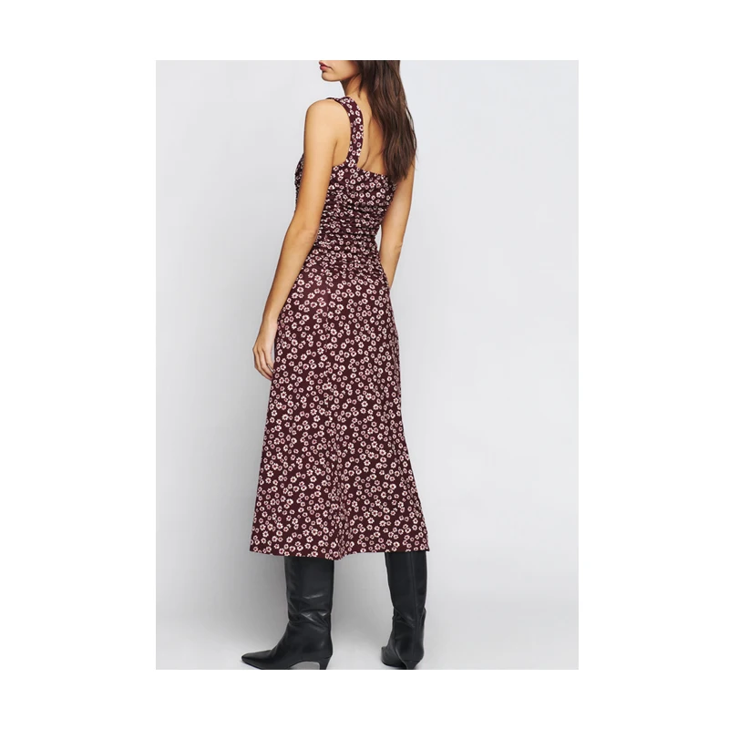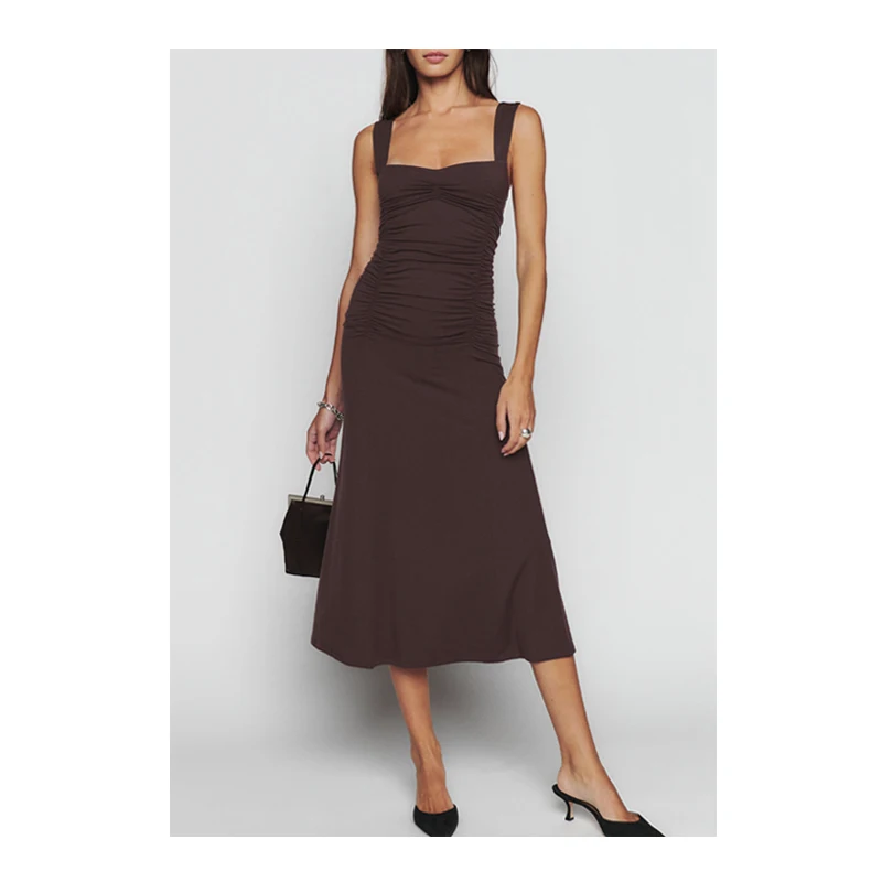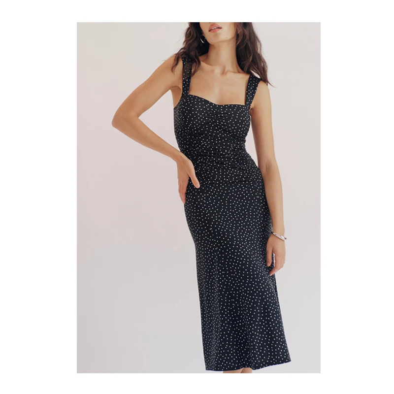 Elegant Ruched Sweetheart Neck Sleeveless Polka Dot Midi Pinafore Dress