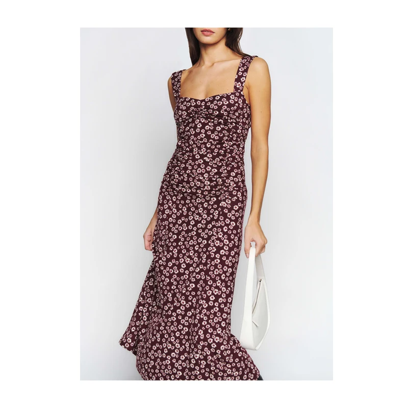 ZYHT 73957 Hot Selling Women Lady Printed Satin Beige Mermaid Fish Tail Floor Length Party Cocktail Evening Dress Gown