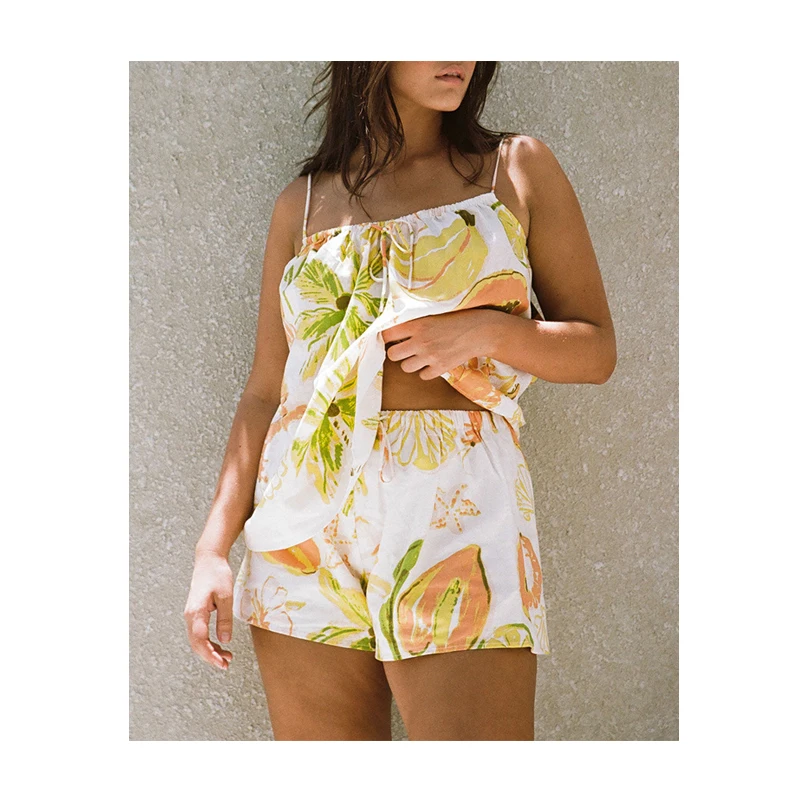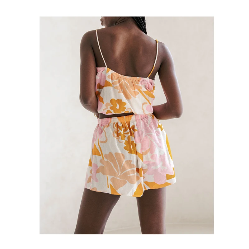 Spaghetti Straps Floral Printed Customize tank Top Lounge Wear Set for Women