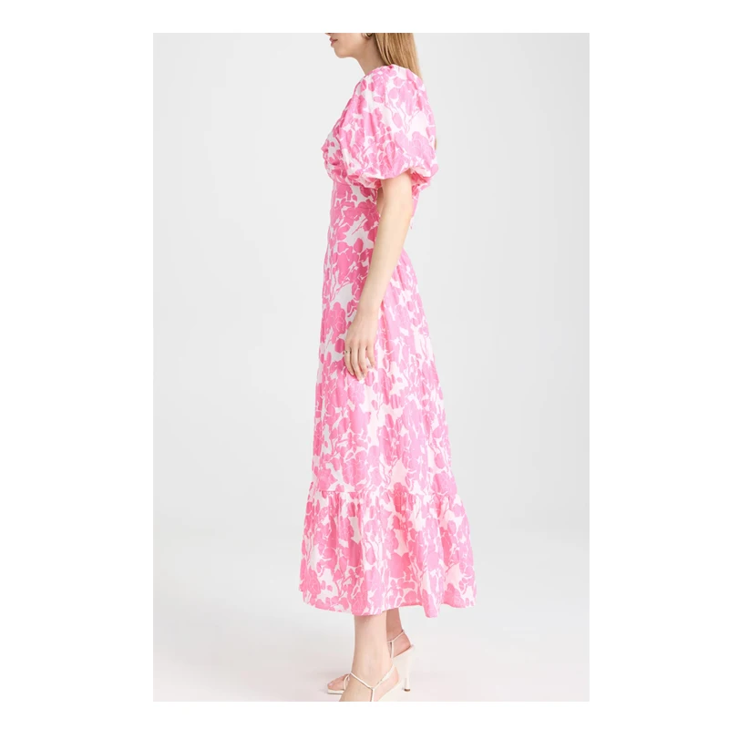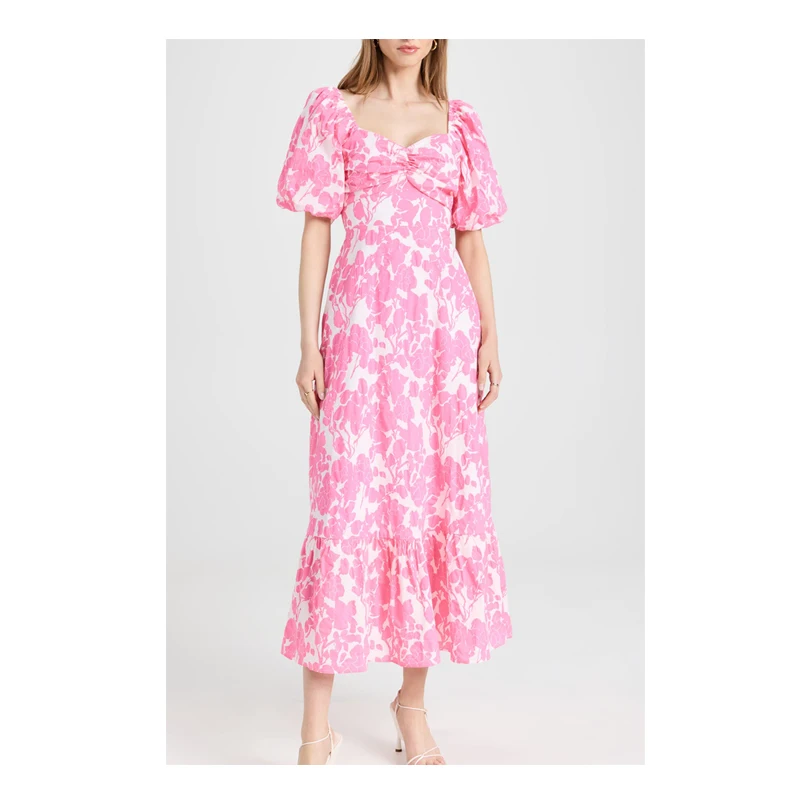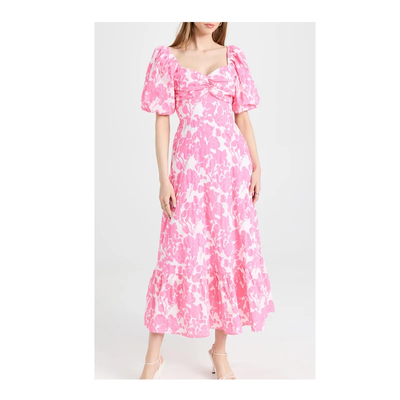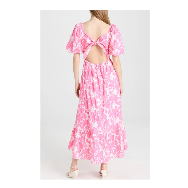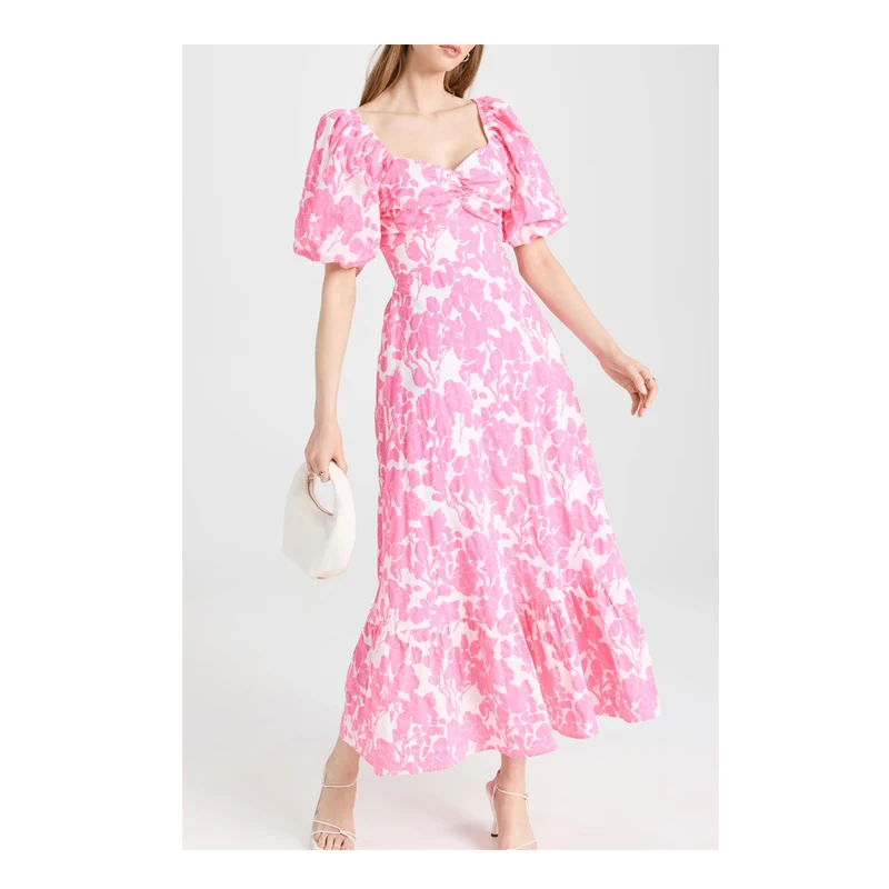 Back Tie Half Puff Sleeve Shirred Flounce a Line Floral Midi Dress for Summer