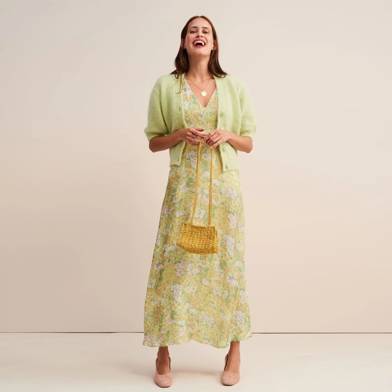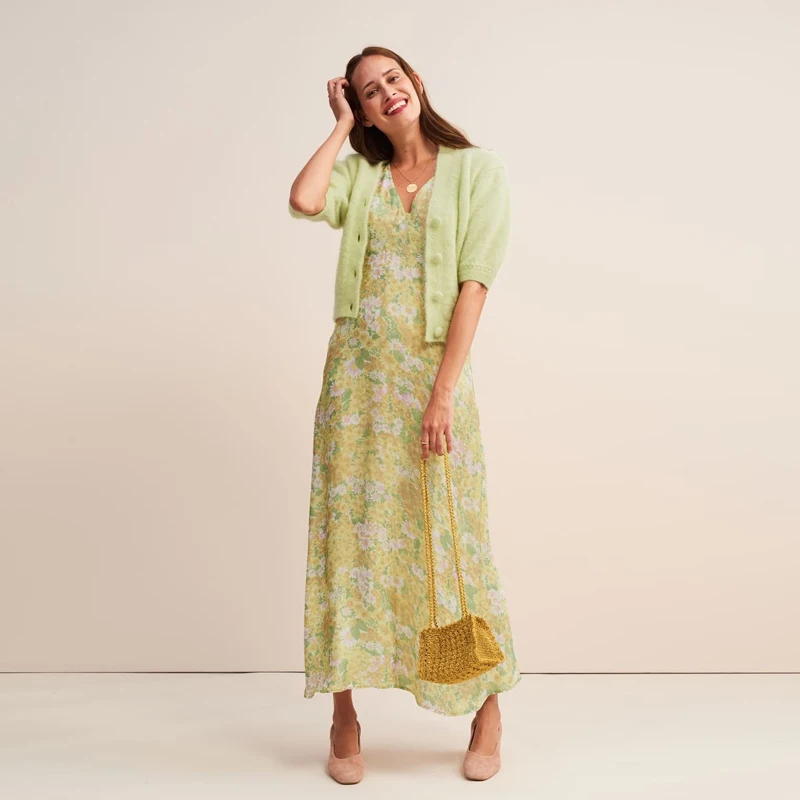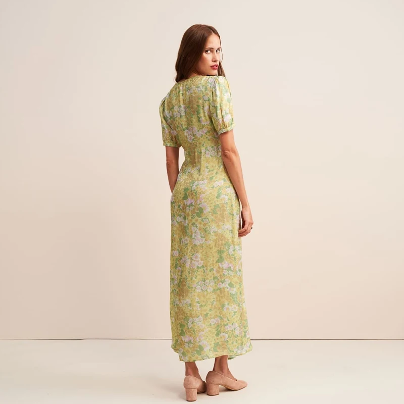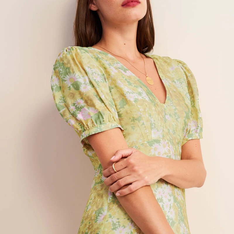 Avocado Green Puff Sleeve Floral Maxi Dresses Summer Resort Women's v Neck Shift Dress