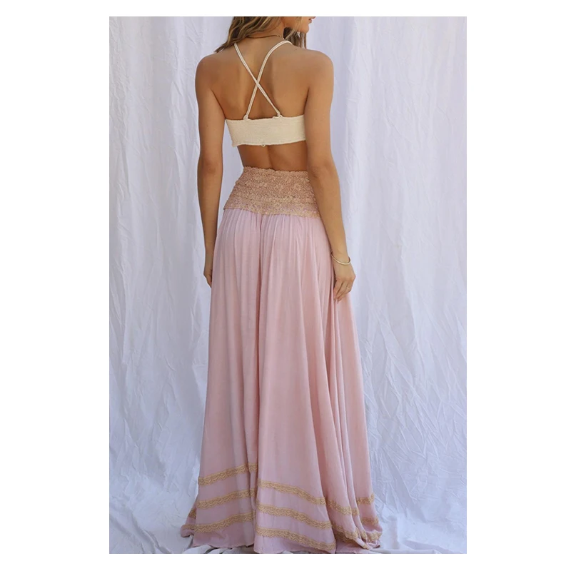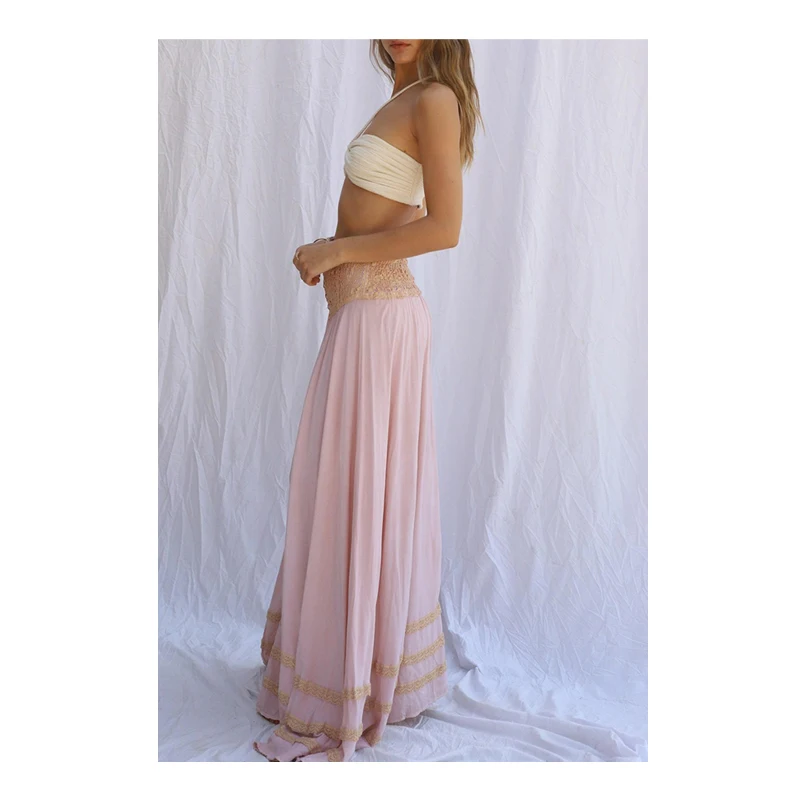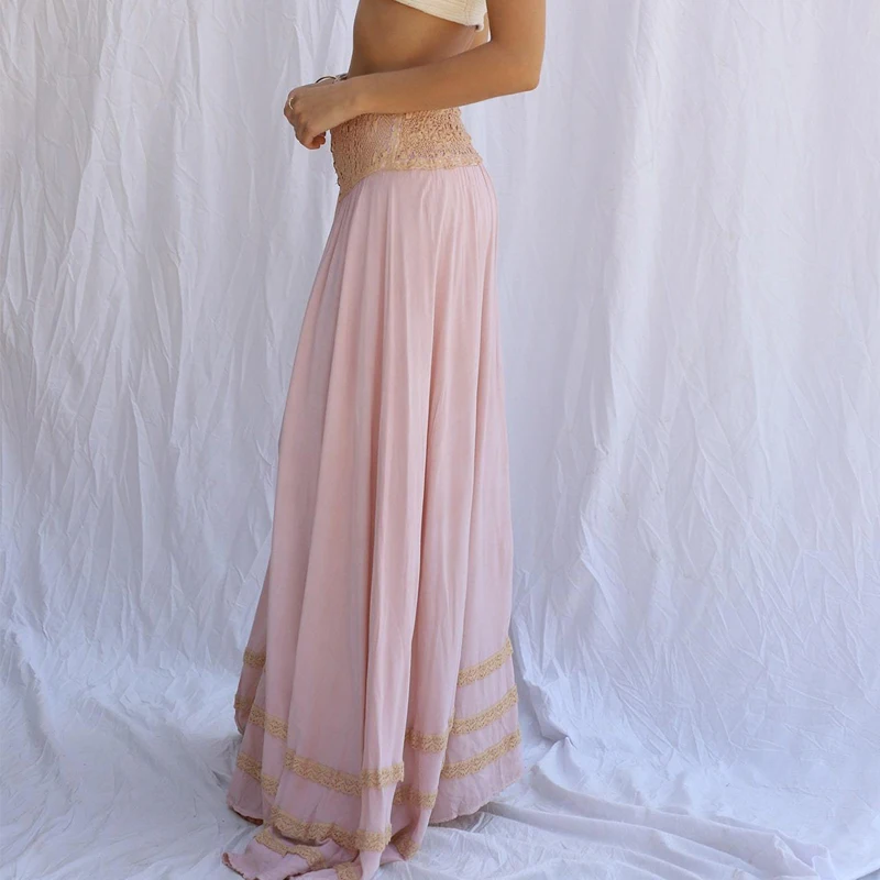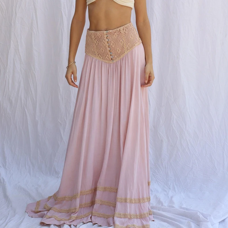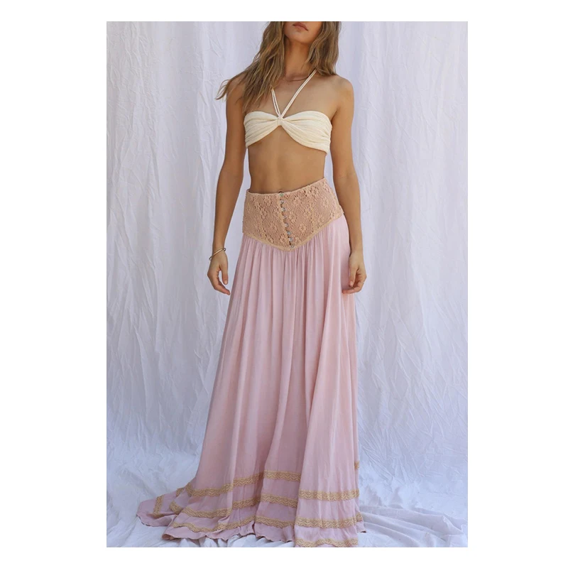 100% Rayon Corset V Shape Waist Lace Maxi Skirt Boho Chic Clothing for Women