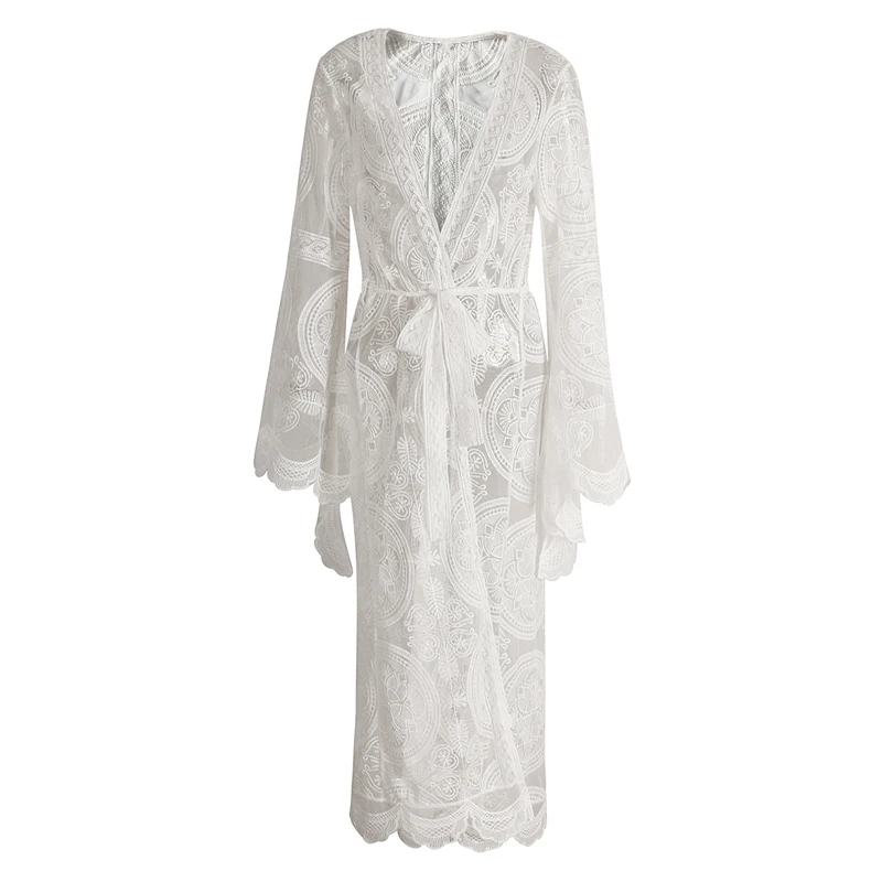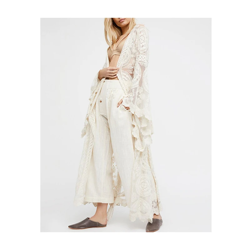 Wholesale Boho Chic Hippie Gypsy Beach Wear Flare Sleeve Embroidery Mesh Kimono