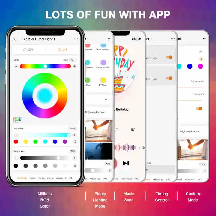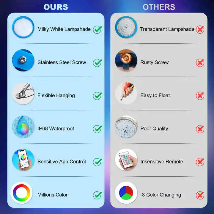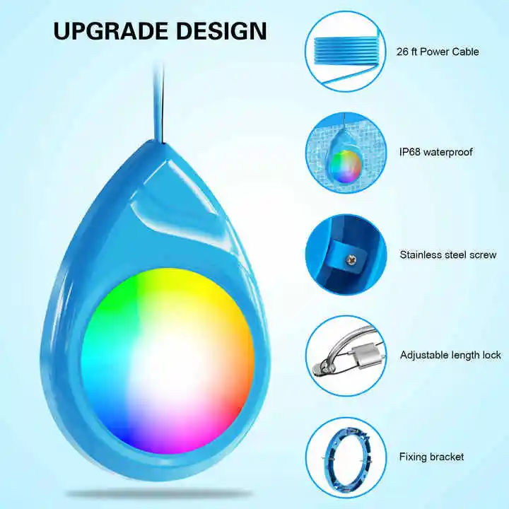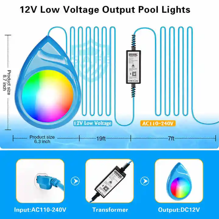 Vertak Waterproof IP68 Underwater RGB Pool Light 90V-240V With Remote Control RGB Swimming Pool Light