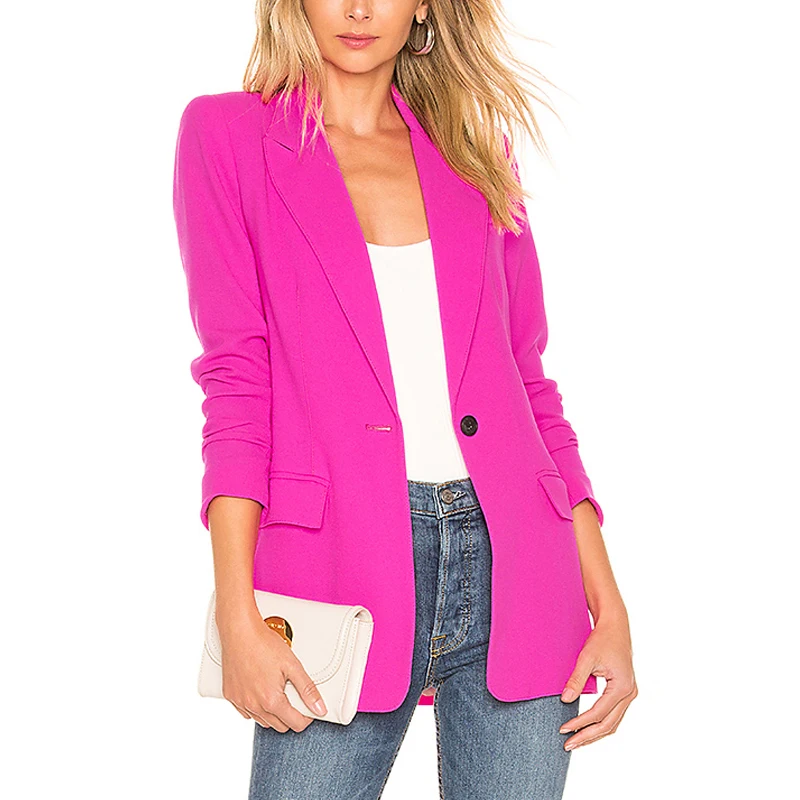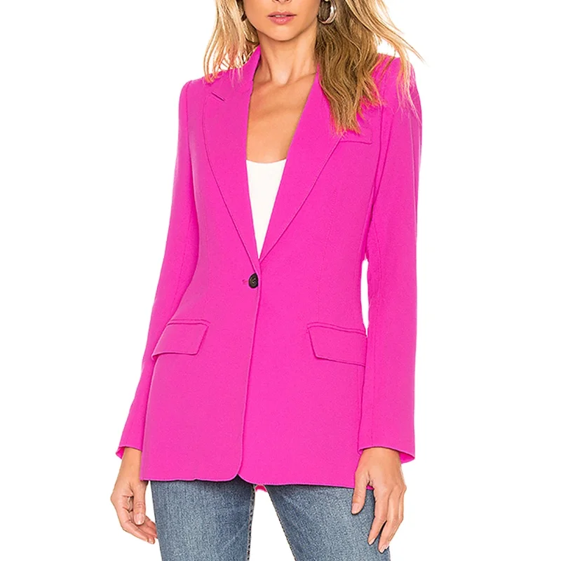 Custom Women Stylish Fushia Wool Blend Blazer Single Button Tailored Long Sleeve Blazer