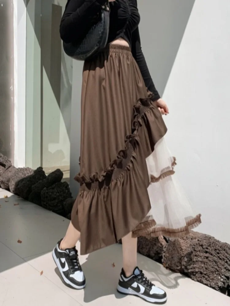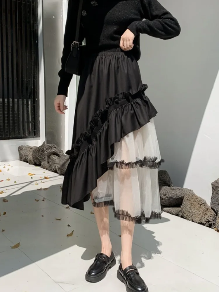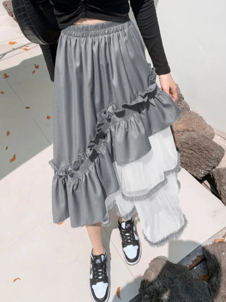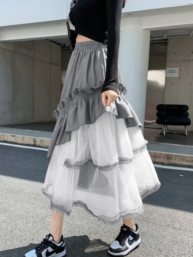 Design Sense Irregular Cake Mid-length Puffy Umbrella Slimming Elastic Waist Anti-Wrinkle New Style Distinctive Yarn Skirt