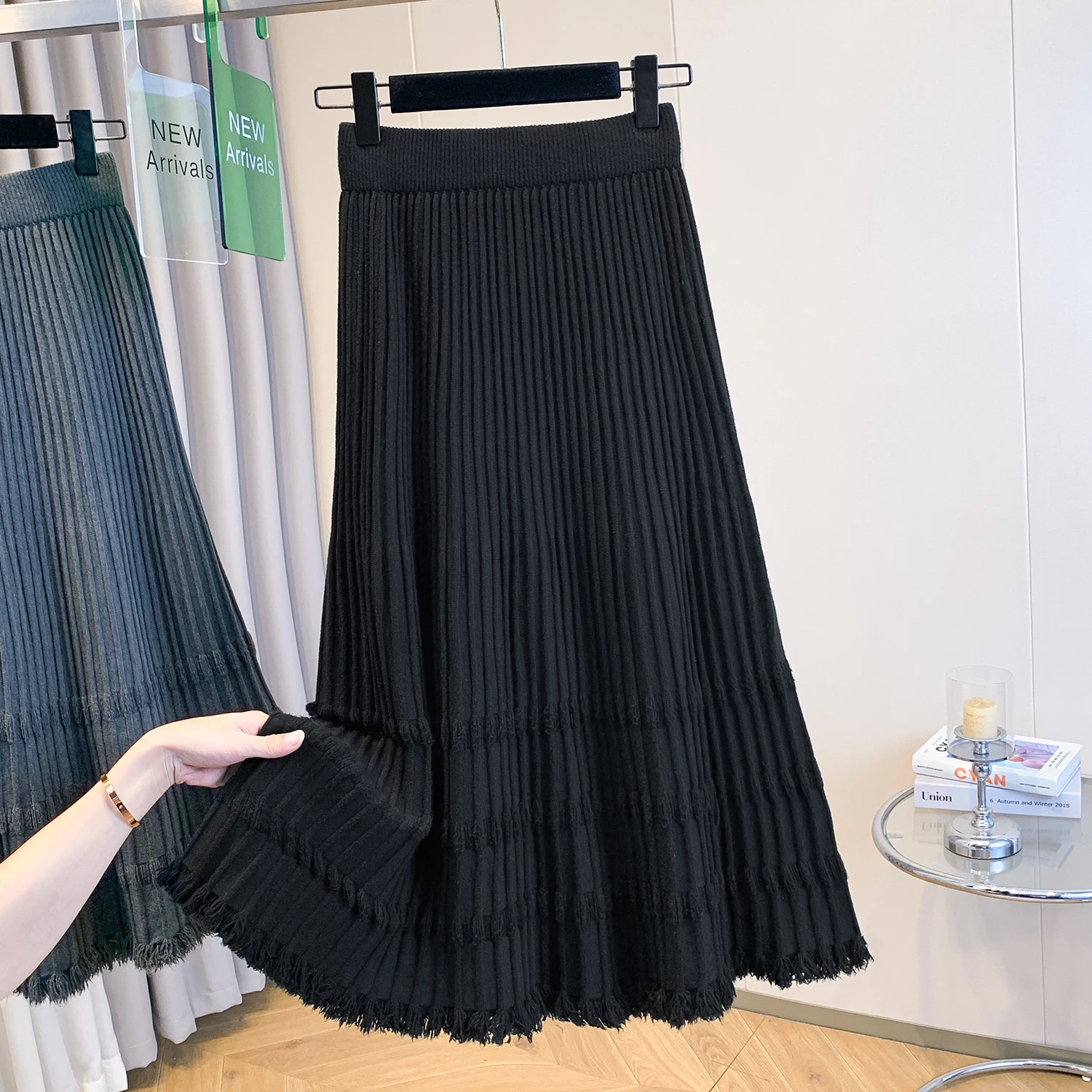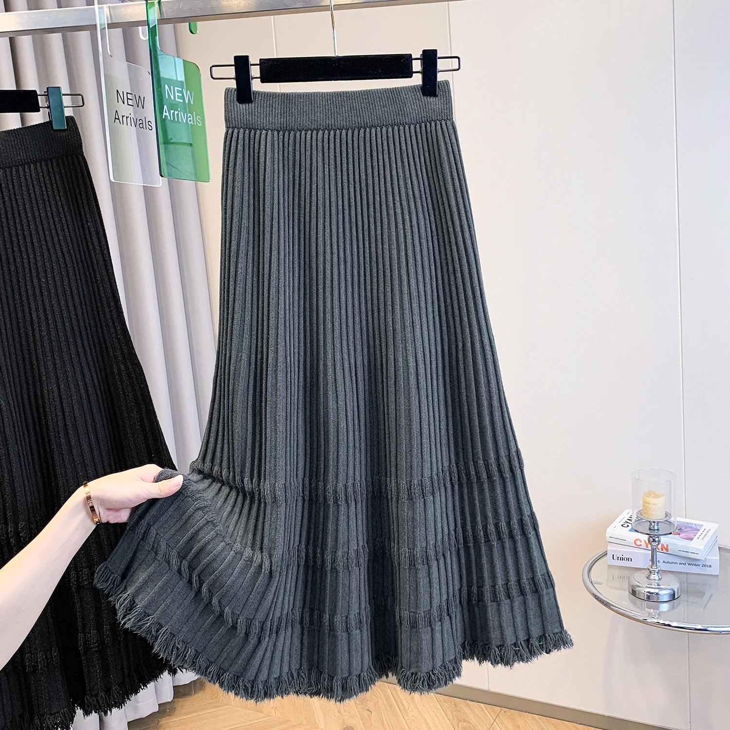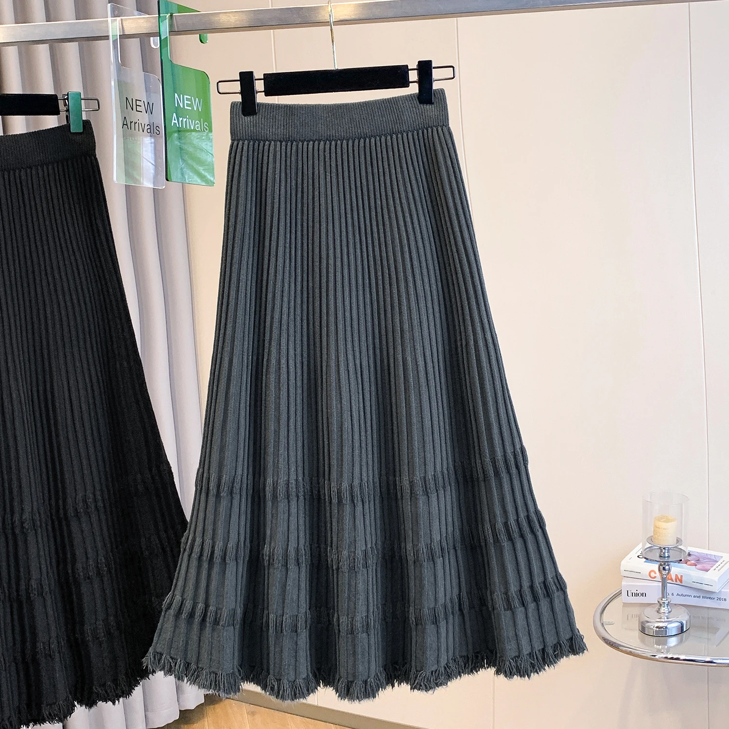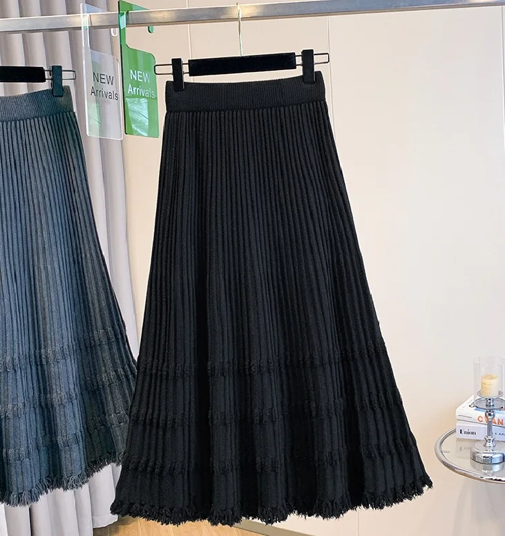 Autumn Winter Knit A-Line Mid-Length Swing Skirt Breathable Formal Empire Waistline Design Solid Pattern Storage Seasons