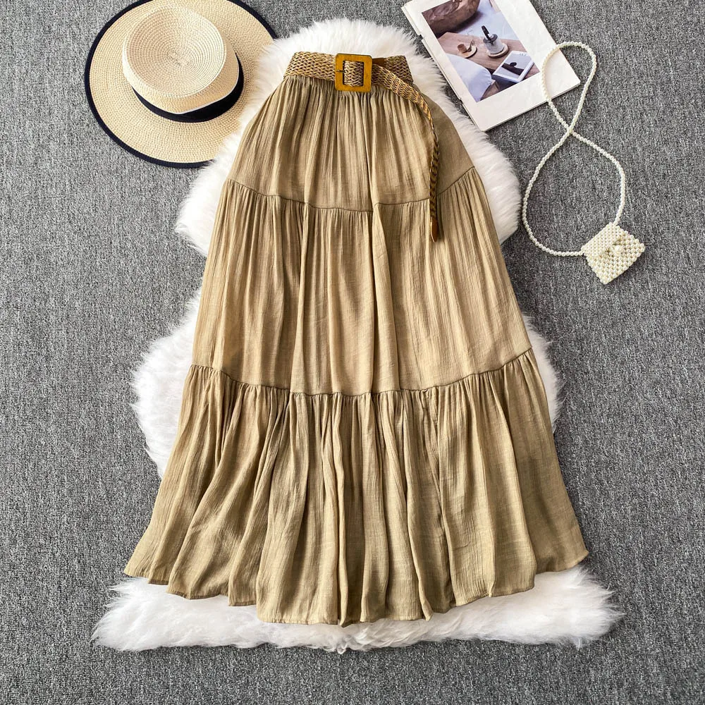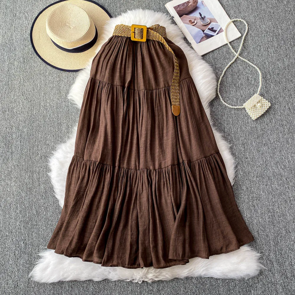 Vintage Vetements Femme Jupes Pour Femmes Women's Long Maxi Skirt Sashes Breathable Casual New Trend Plain Dyed Belts