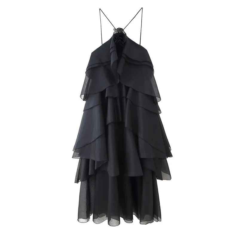 Beach Layer Ruffles Long Dress Women 3d Flower Backless Sleeveless Slim Fit Maxi Dresses Female 2025 Summer Lady Party Robes