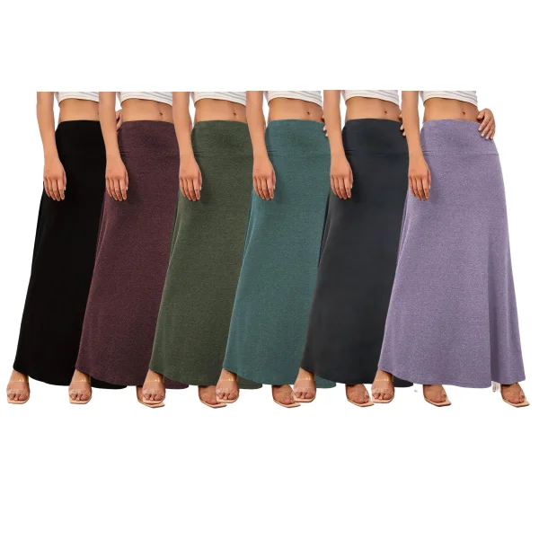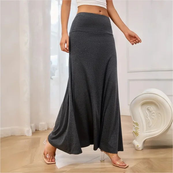 Summer Women's Solid Color Maxi Loose Knitted Long Skirt High Waist A-Line Breathable Casual Style Natural Waistline