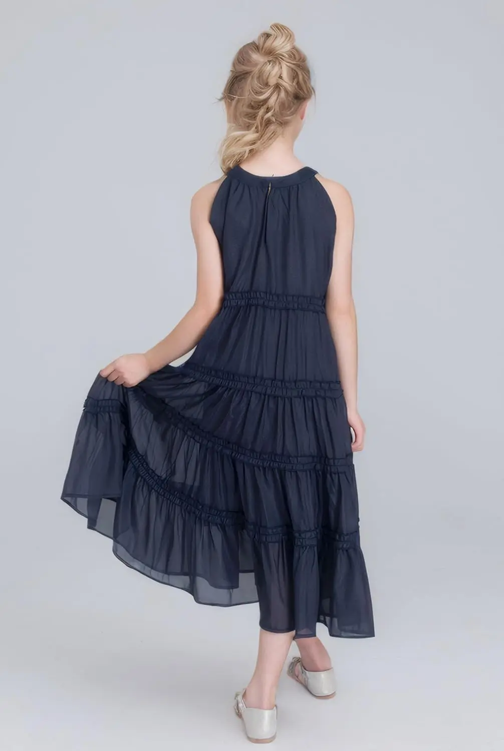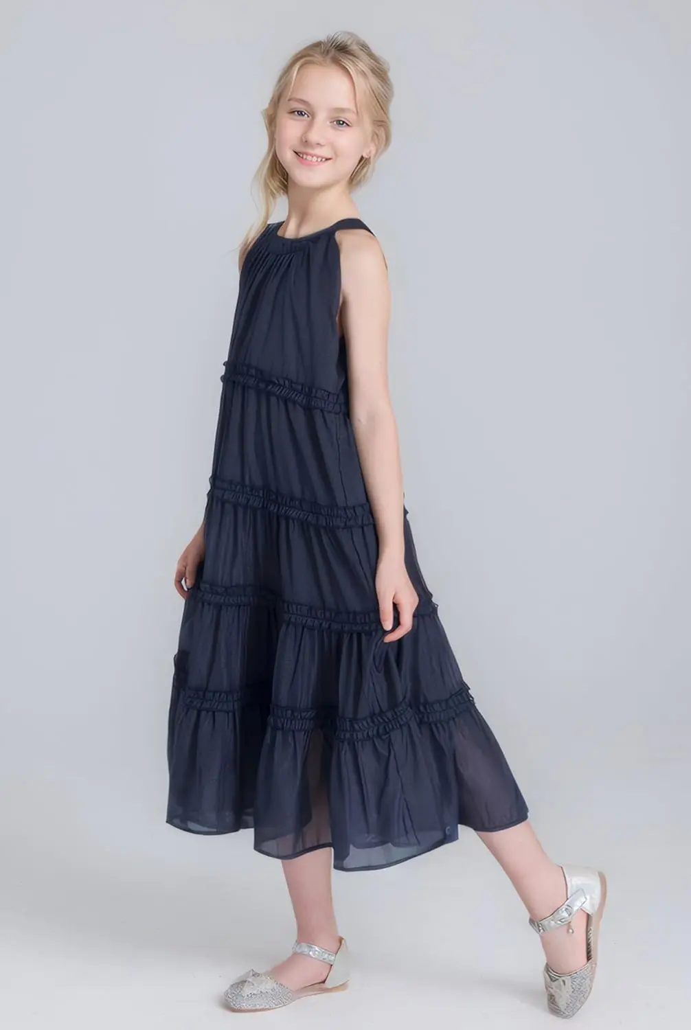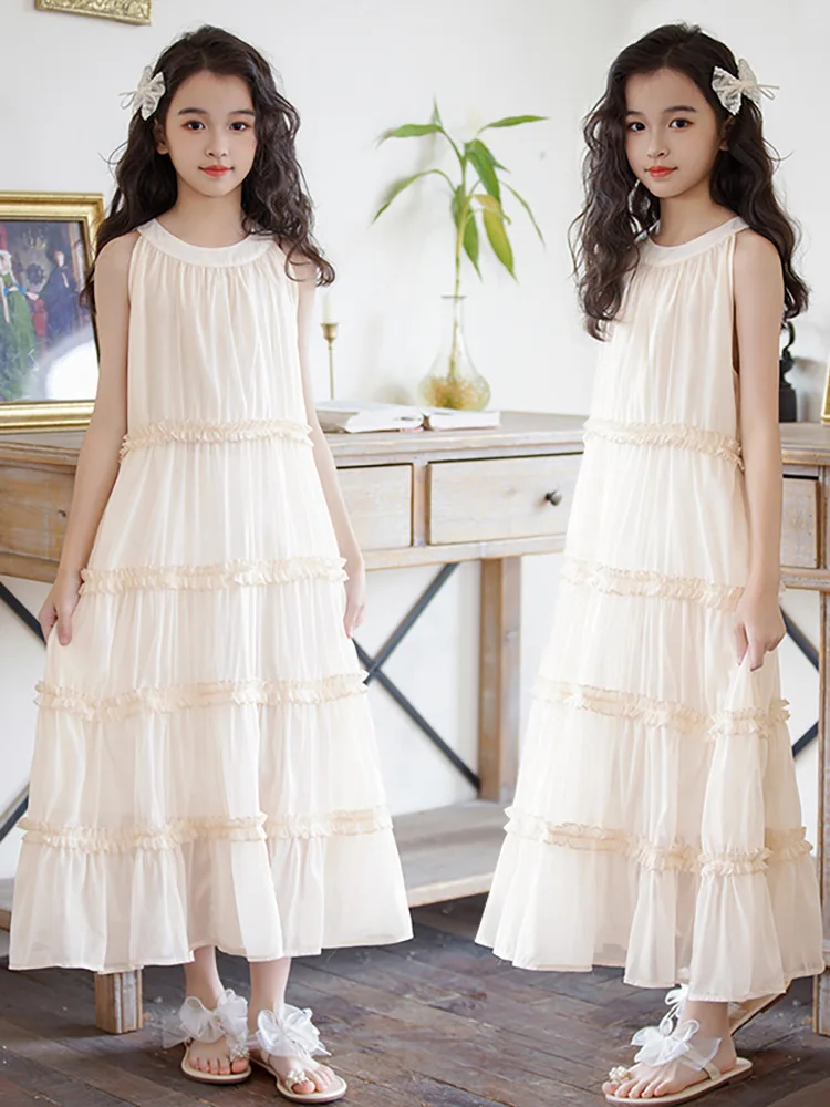 Girls Dresses 10-14 Yrs Lace Solid Chiffon Midi Sleeveless off Shoulder Ruffle A-Line Natural Waist Summer Elegant Casual