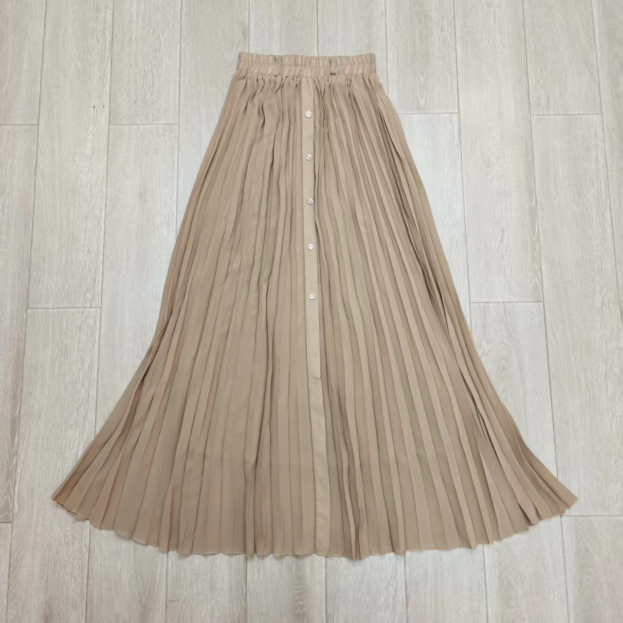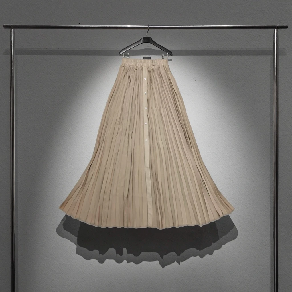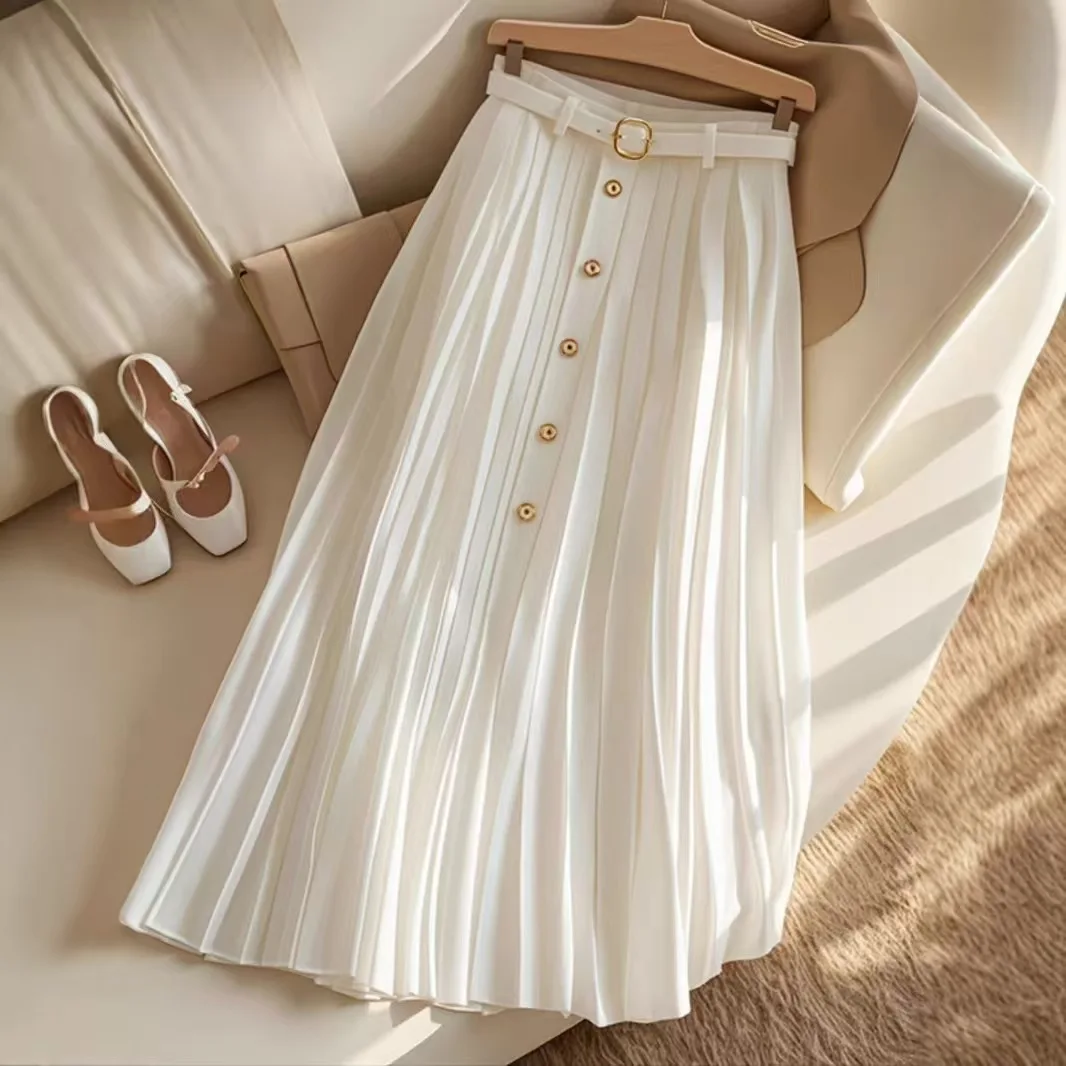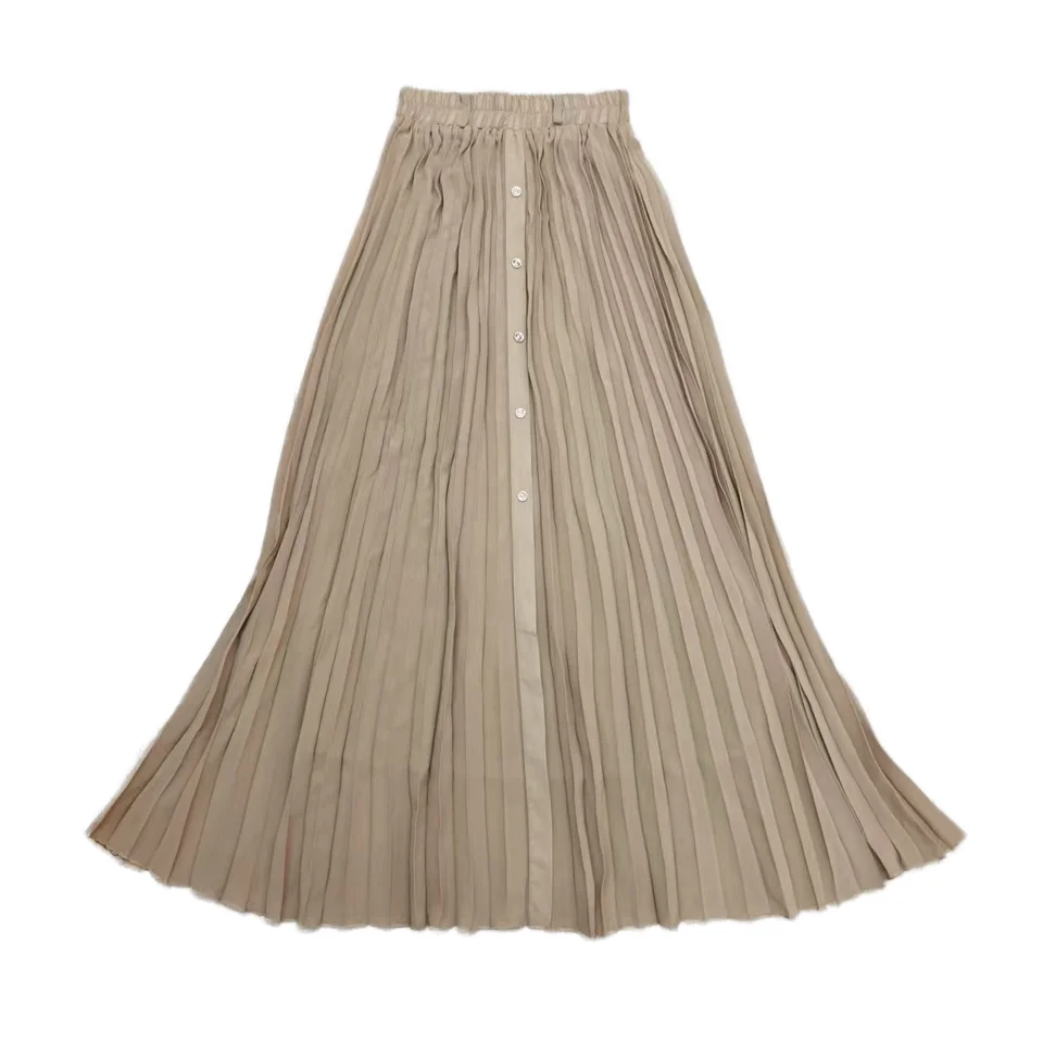 Women's High Waist Pleated Long Skirt Solid Color High Waist Loose Fit Empire Breathable Yarn Dyed for Spring Autumn Chiffon