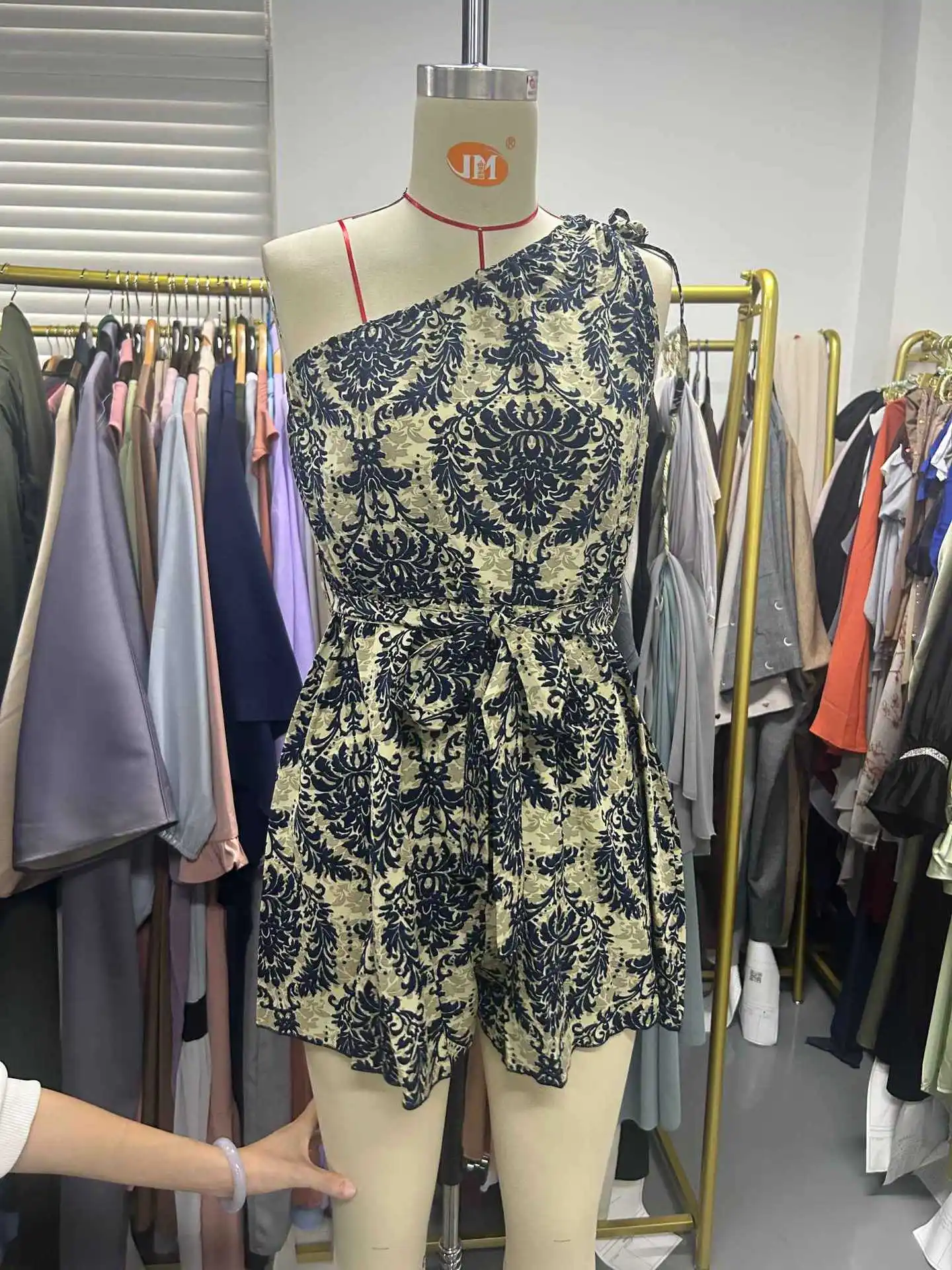 Romantic Vacation Style Women's Floral Print Jumpsuit Ladies Ethnic Slant Shoulder Drawstring Sleeveless Short Pants Culottes