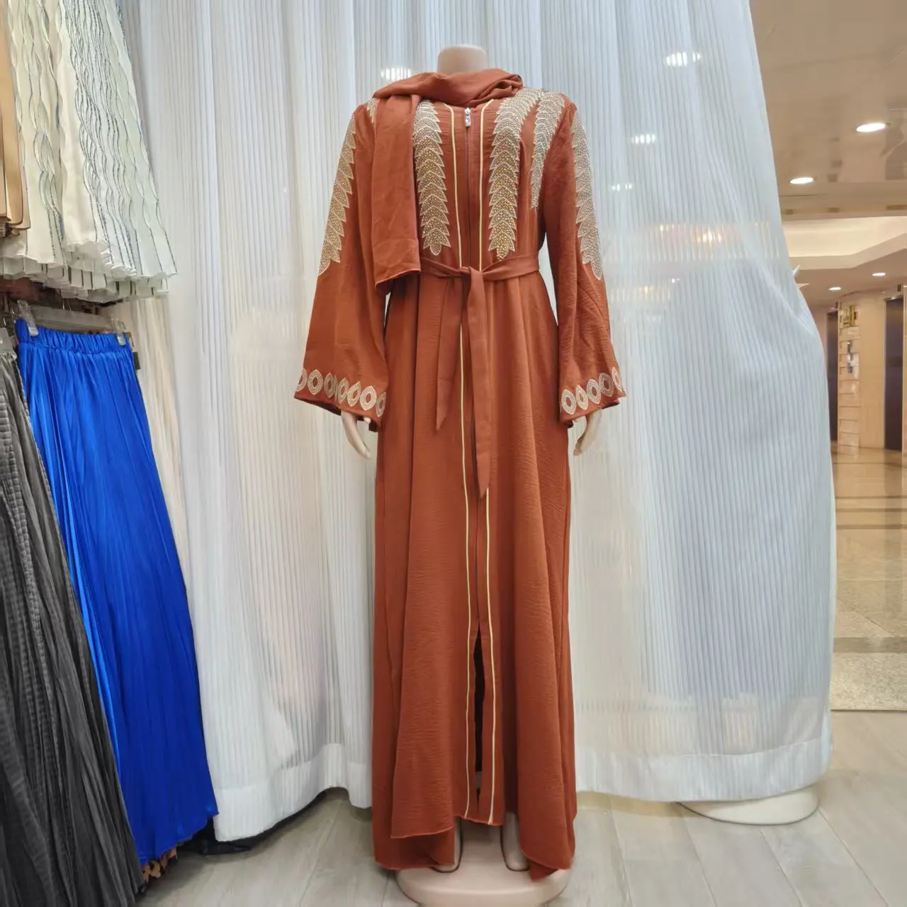 Customize Traditional Fashion Women's Solid Orange Polyester Attire with Long Sleeves Plus Size for Spring or Winter Season