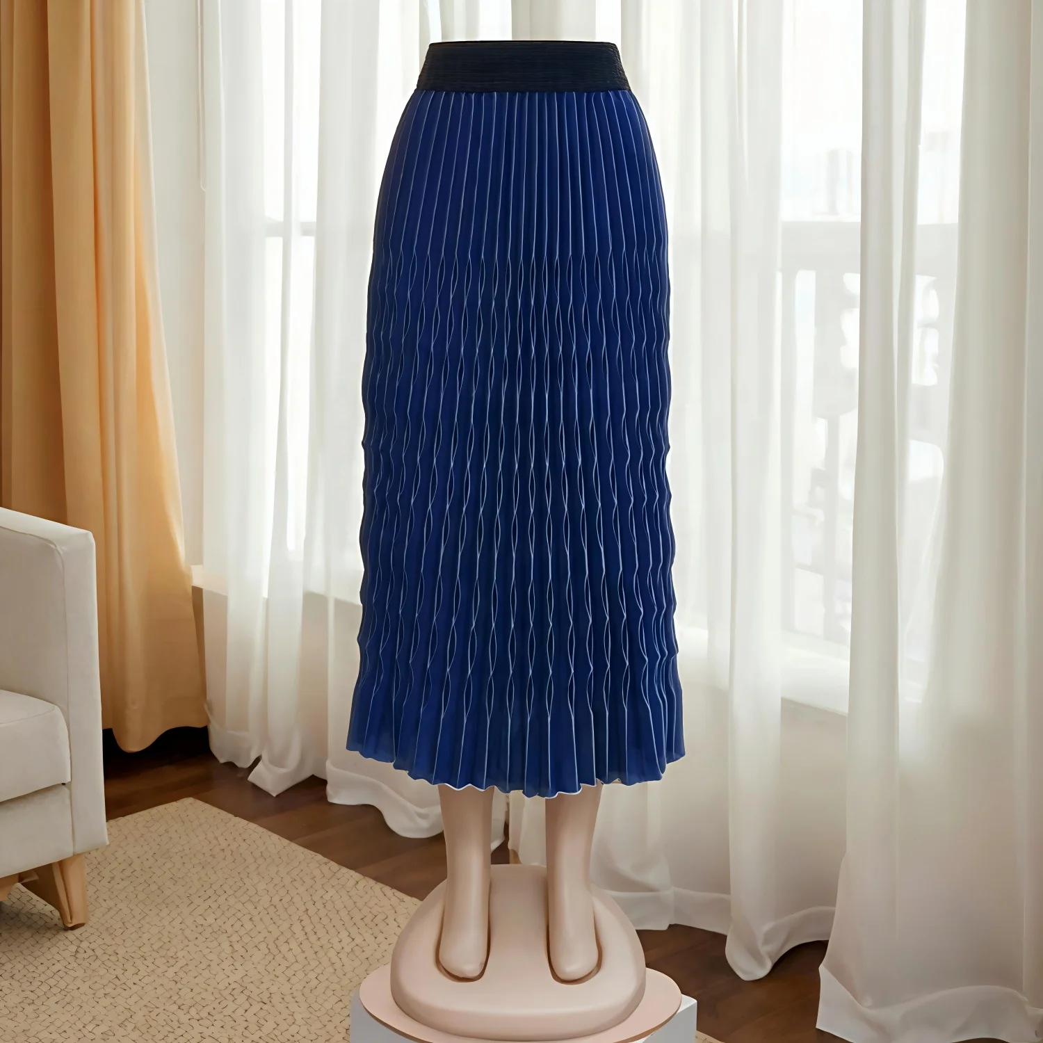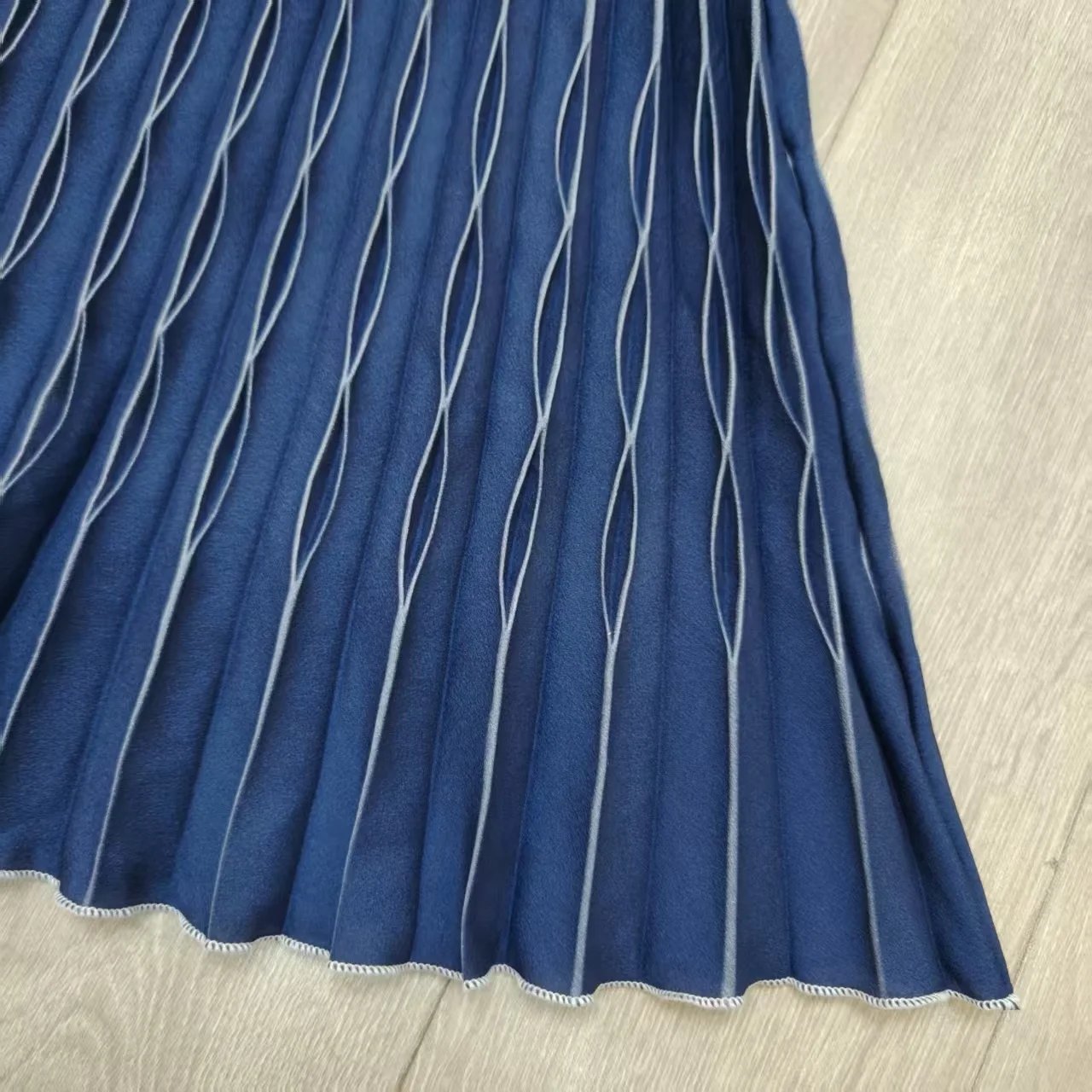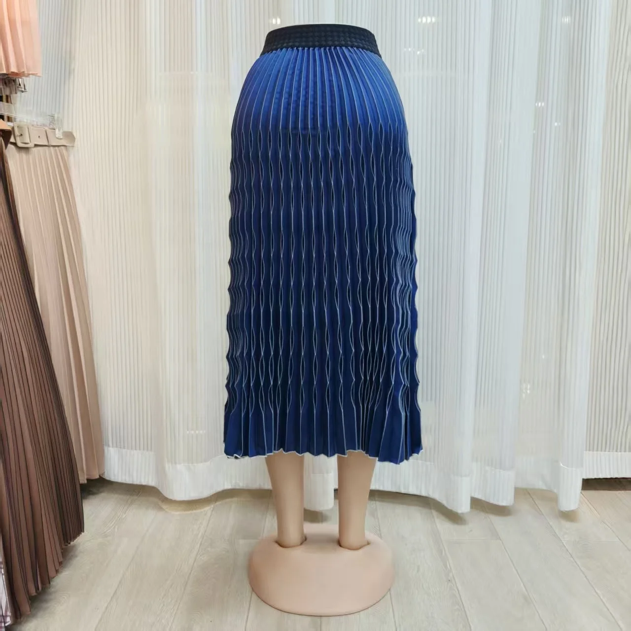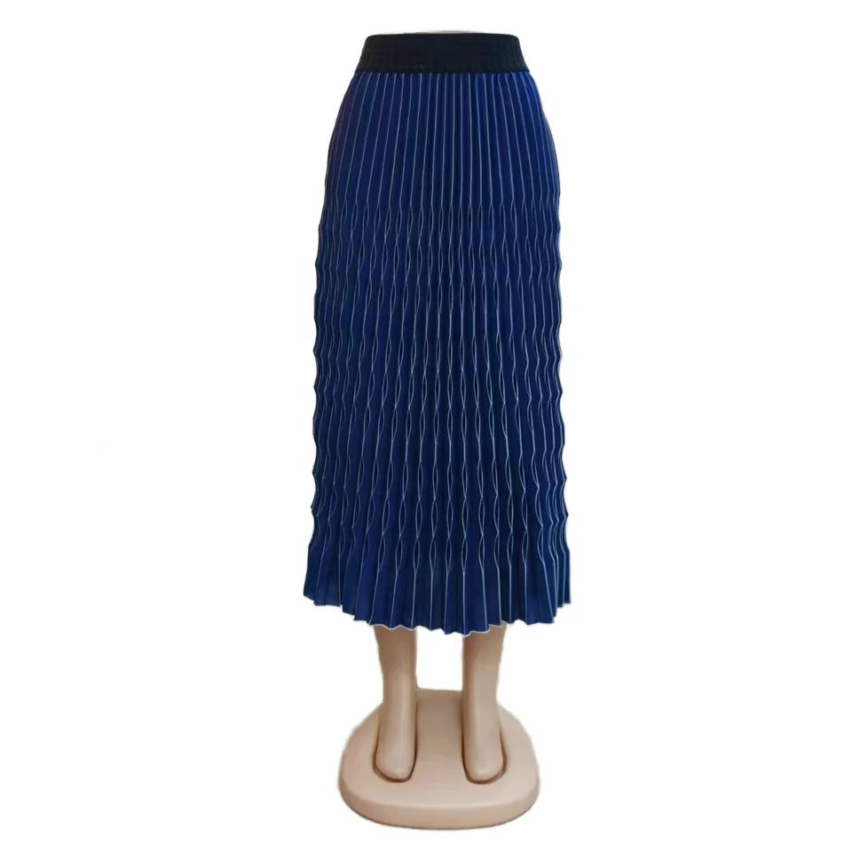 Custom Wholesale New Style Women's Royal Blue Hand Crinkled Skirt Plus Size Chiffon Soft Polyester for Office Formal Occasion